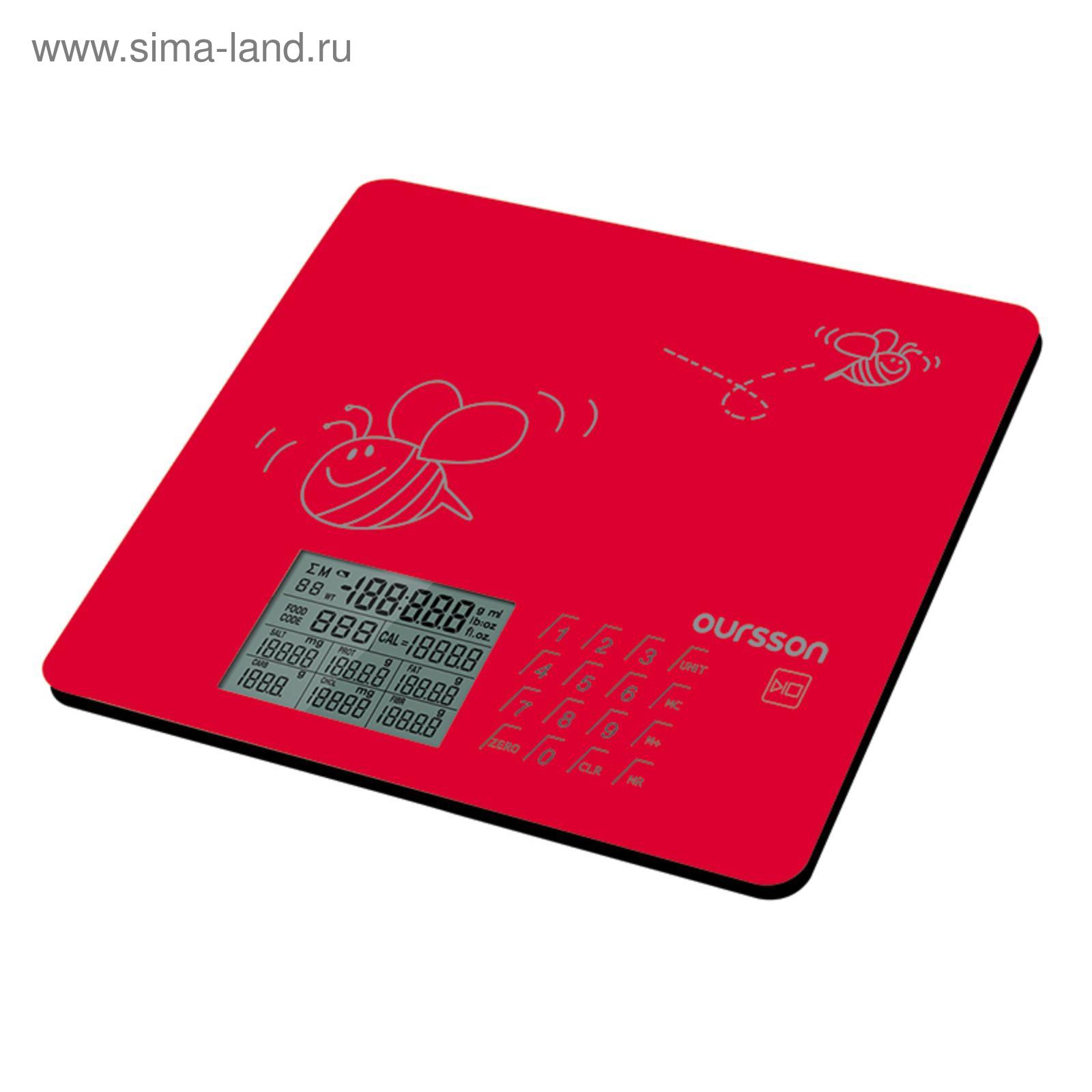 Весы кухонные oursson ks0502gd/rd, электронные, до 5 кг, сенсор, 1хcr2032, красные.