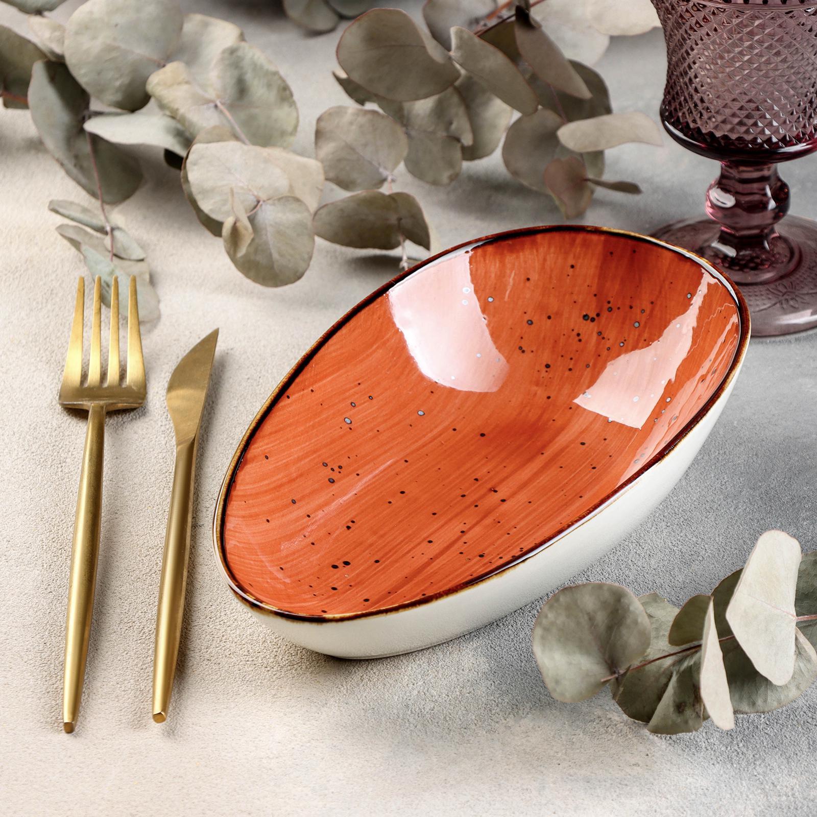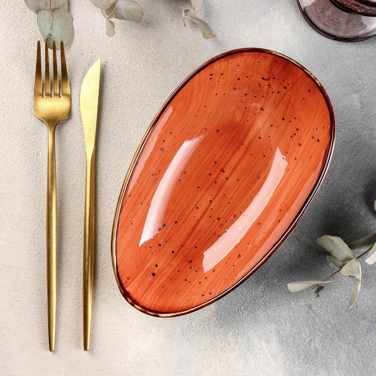 Блюдо керамическое сервировочное «сапфир», 20,5x12,5x5 см, цвет оранжевый