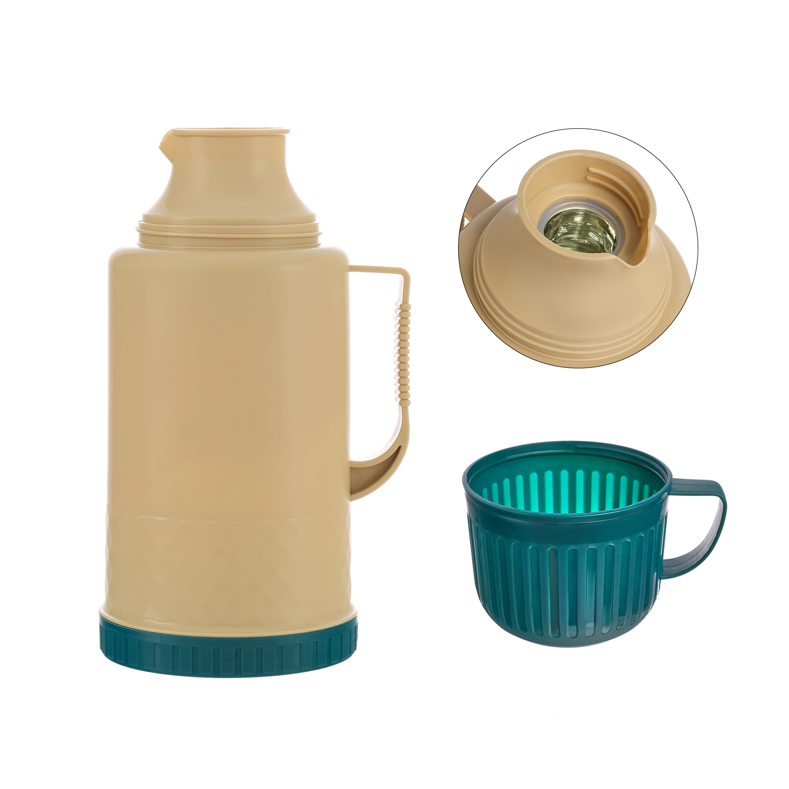 Термос 1.2 л, со стеклянной колбой, сохраняет тепло 18 ч, 15 х 28 см, бежевый