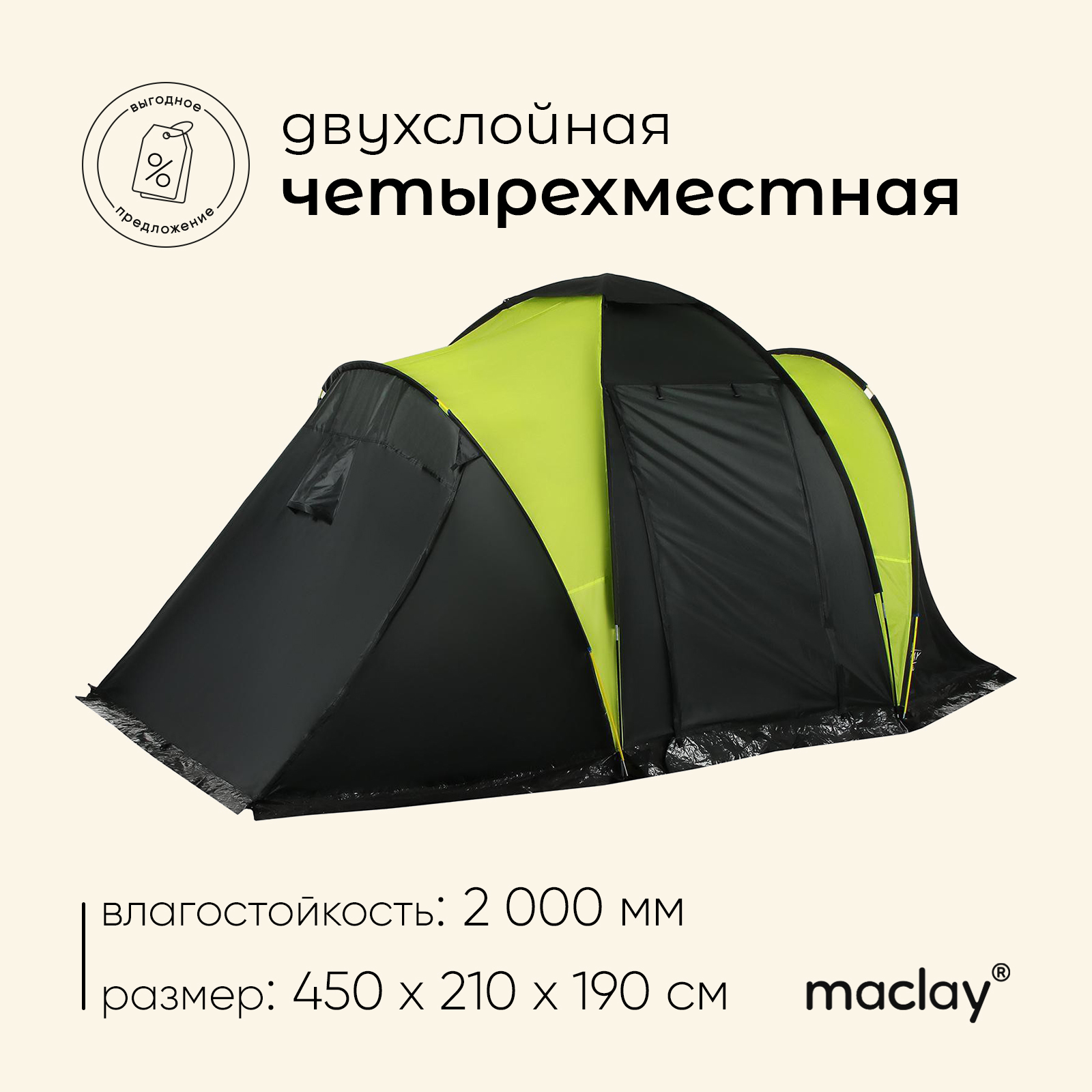 Палатка туристическая, кемпинговая Maclay Mirage 4, 4-местная, с тамбуром