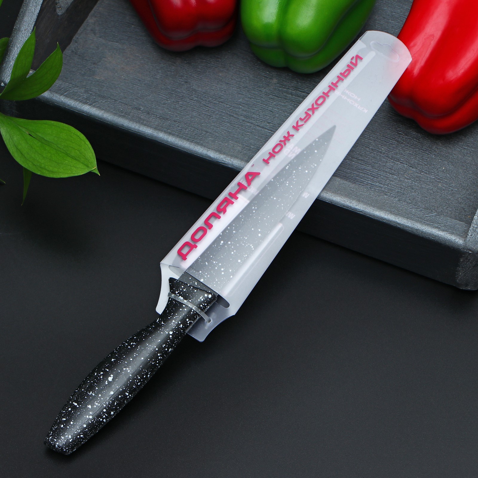 Нож с антиналипающим покрытием доляна «зефир», универсальный, лезвие 12,5 см, цвет чёрный
