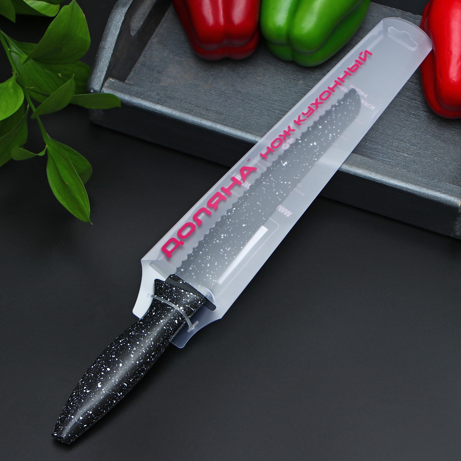 Нож с антиналипающим покрытием доляна «зефир», хлебный, лезвие 20 см, цвет чёрный