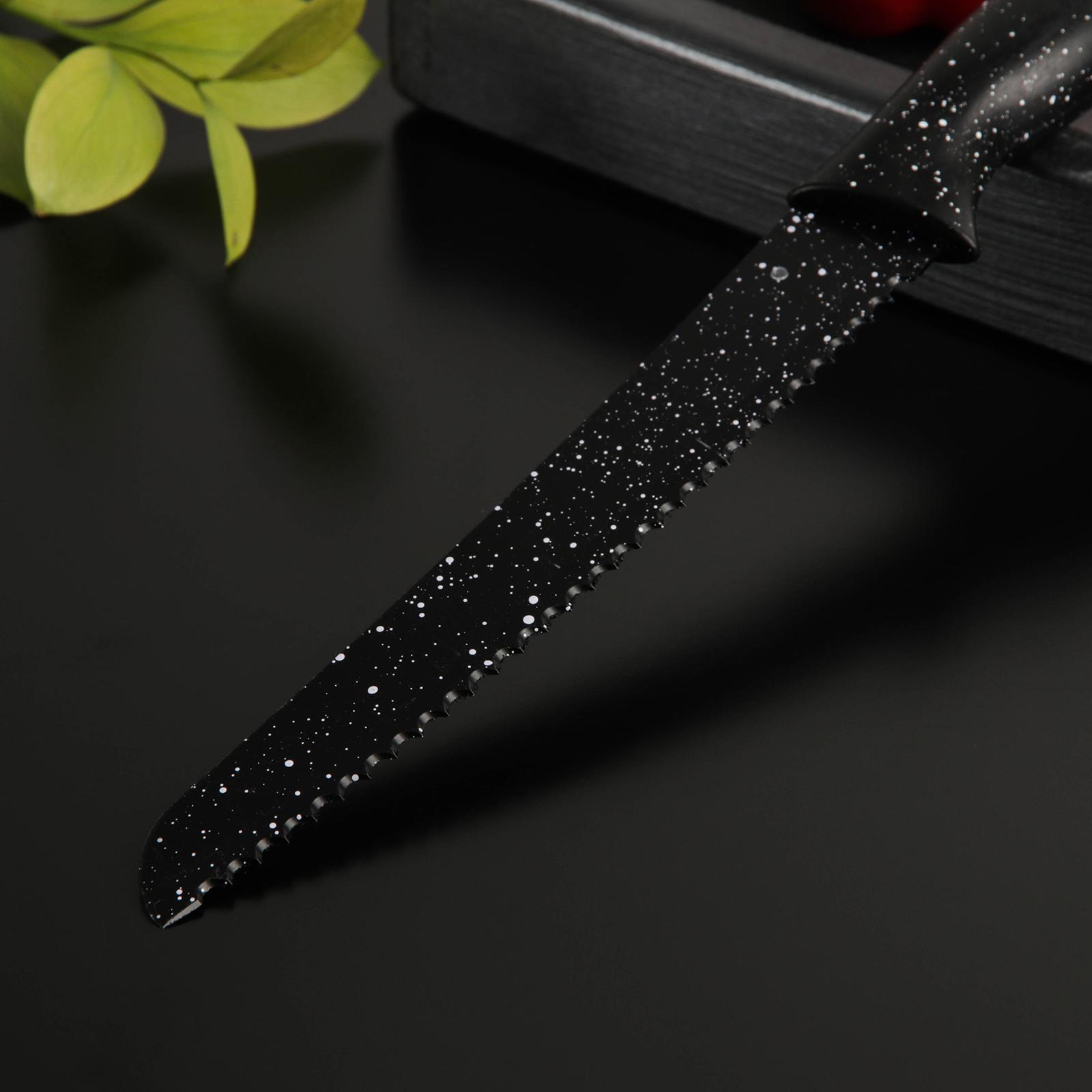 Нож с антиналипающим покрытием доляна «зефир», хлебный, лезвие 20 см, цвет чёрный Нож с антиналипающим покрытием доляна «зефир», хлебный, лезвие 20 см, цвет чёрный Нож с антиналипающим покрытием доляна «зефир», хлебный, лезвие 20 см, цвет чёрный