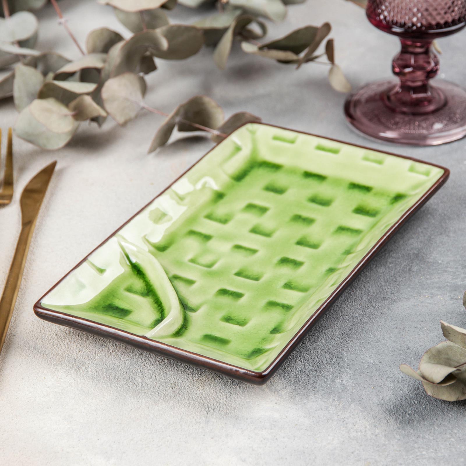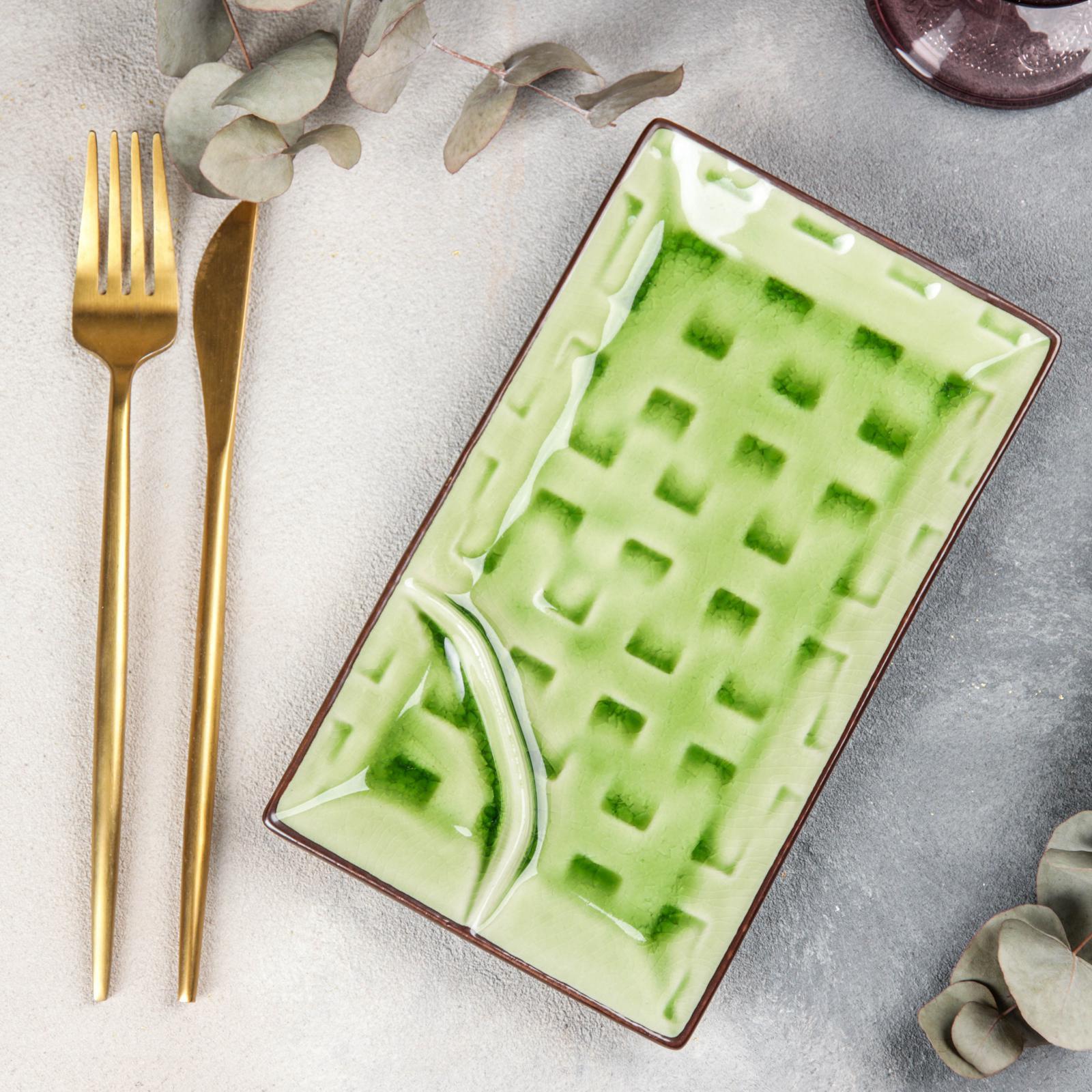 Блюдо керамическое с соусником «таллула», 21x12 см, цвет зелёный