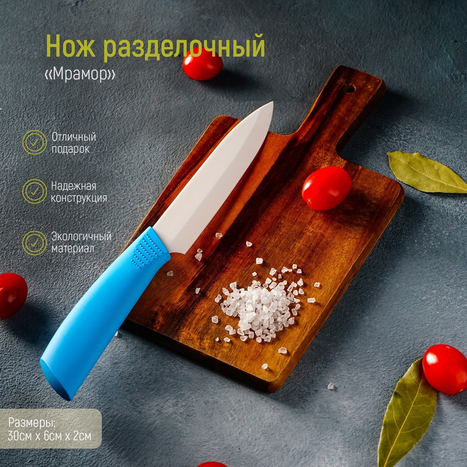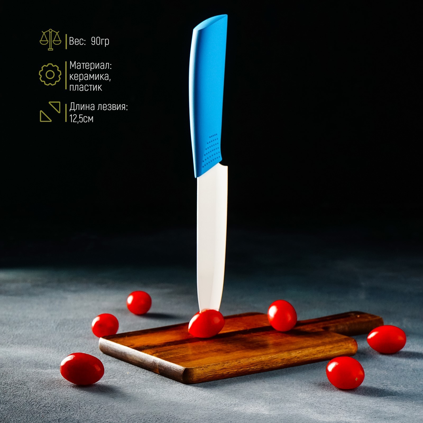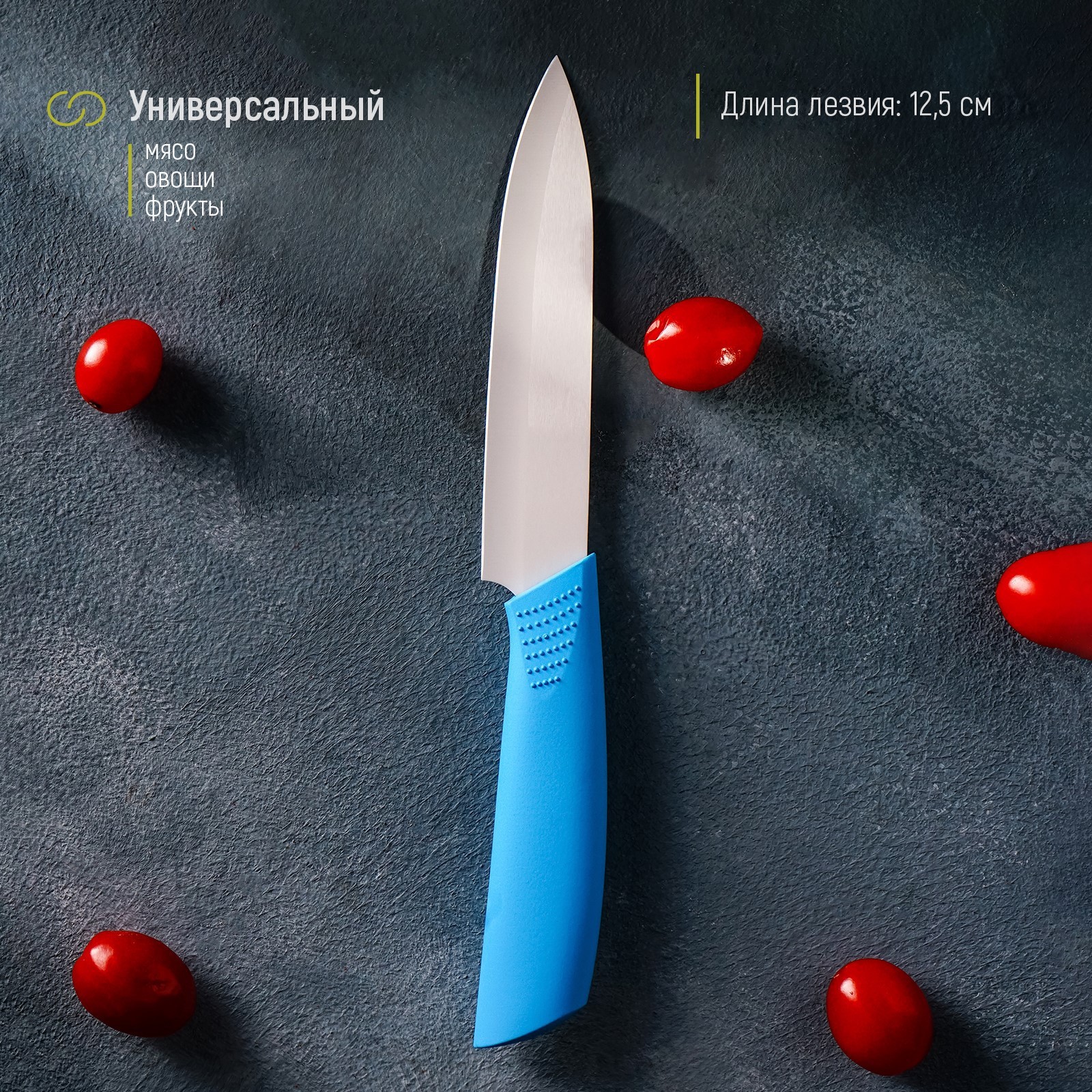 Нож керамический доляна «симпл», лезвие 12,5 см, ручка Soft Touch, цвет синий