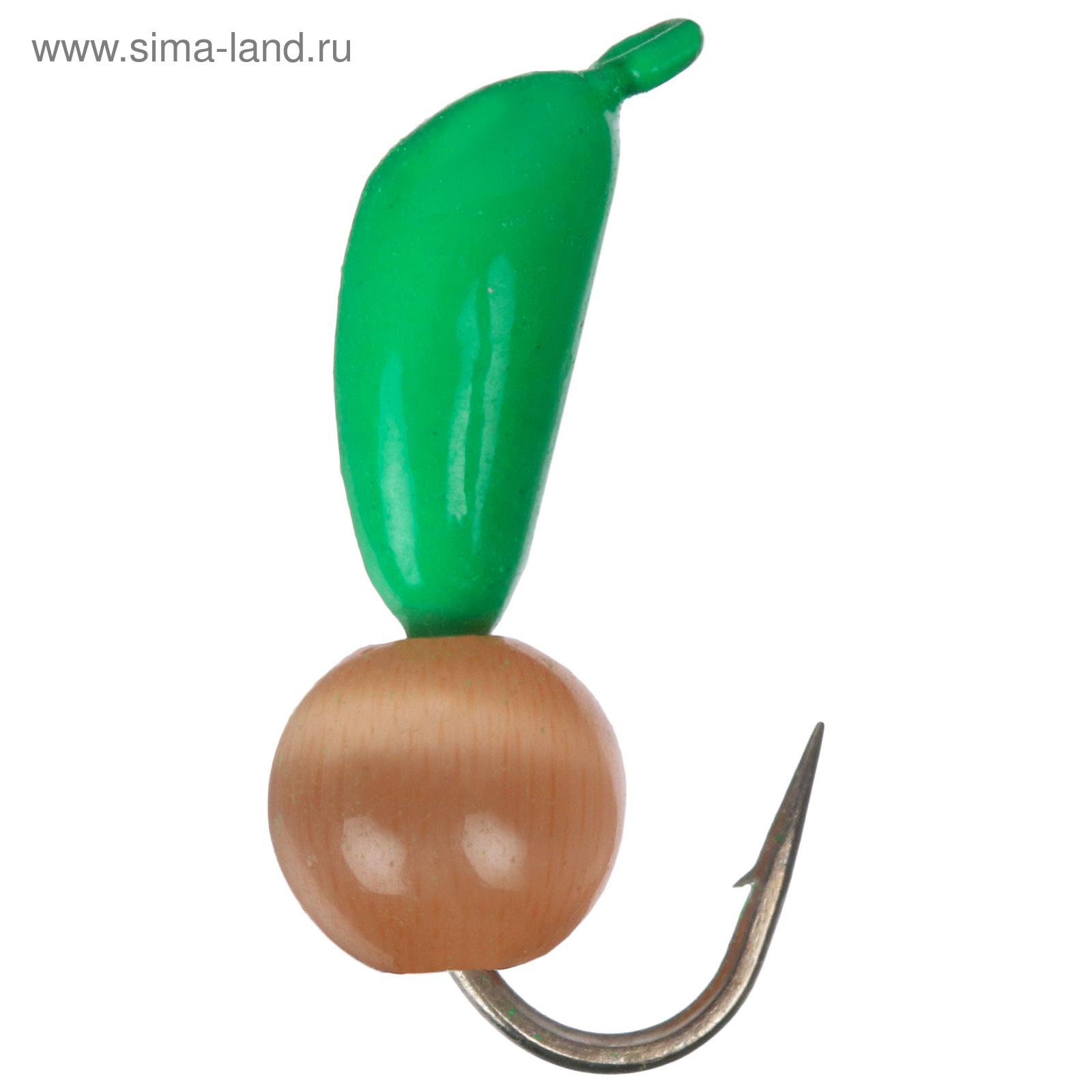 Мормышка безнасадочная "яман" "банан" зеленый, D=3 мм, вес 0.5 г, кошачий глаз красный (уп. 5 шт.)