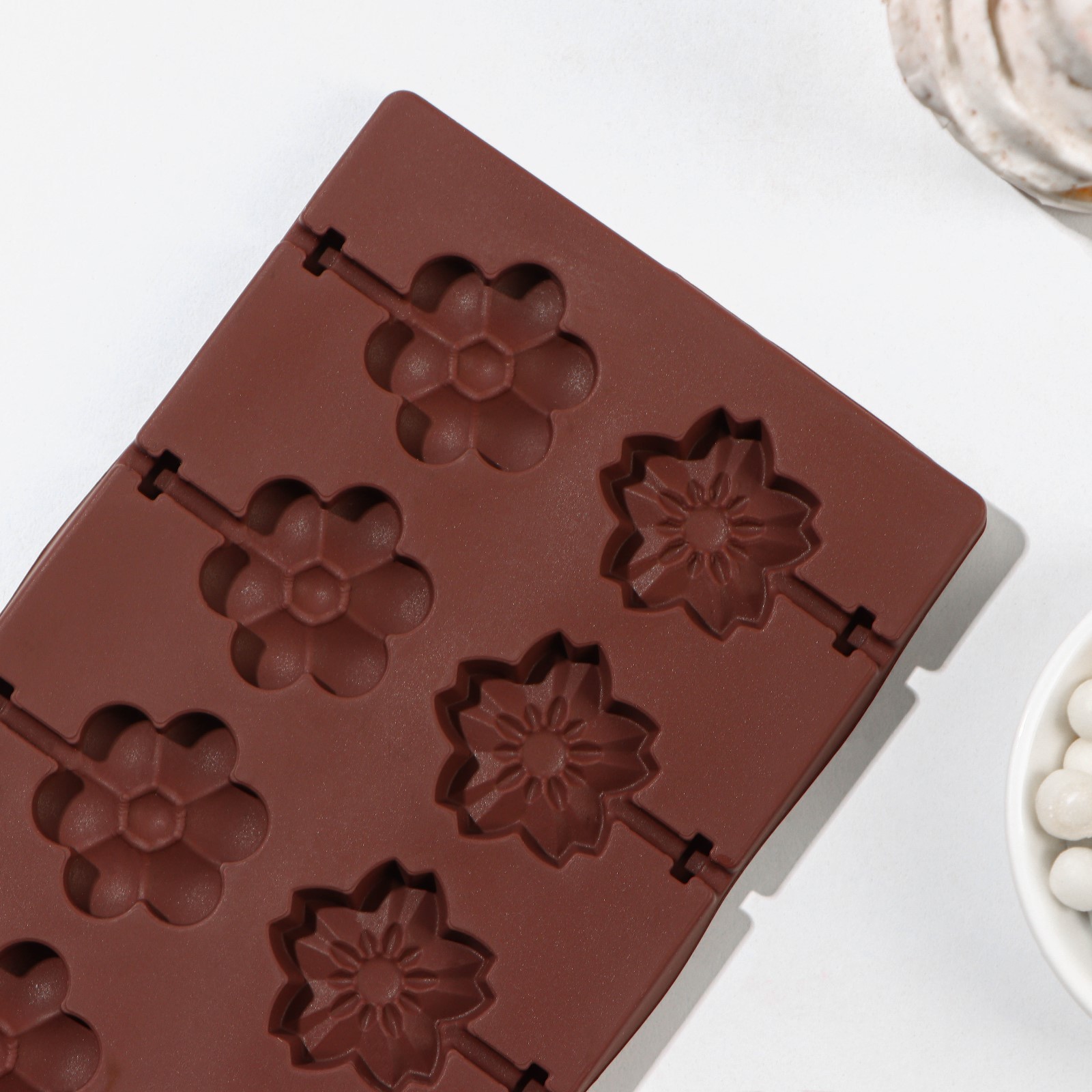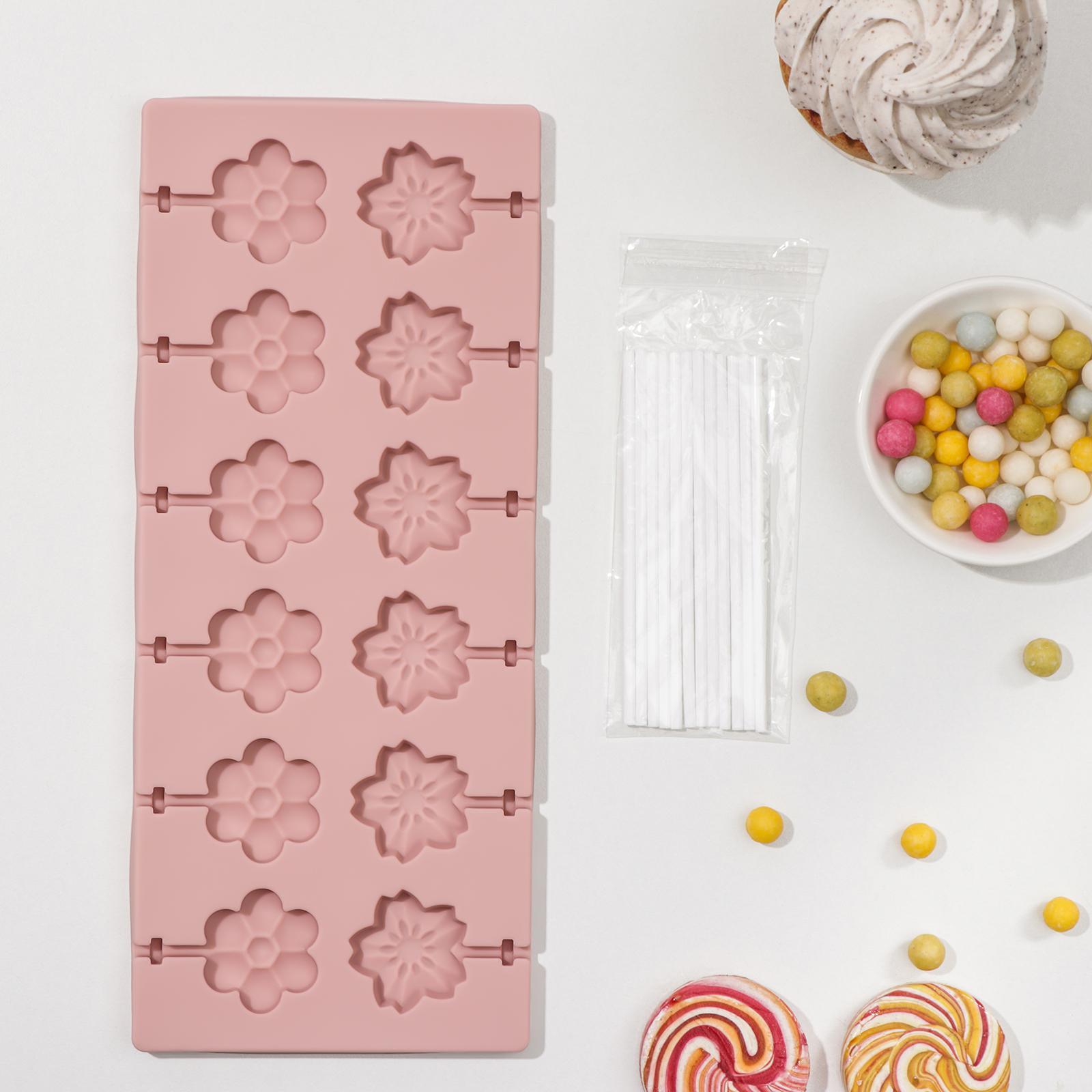 Форма силиконовая для леденцов доляна «клумба», 25x10,5x1 см, 12 ячеек (3,2x3 см), с палочками, цвет микс