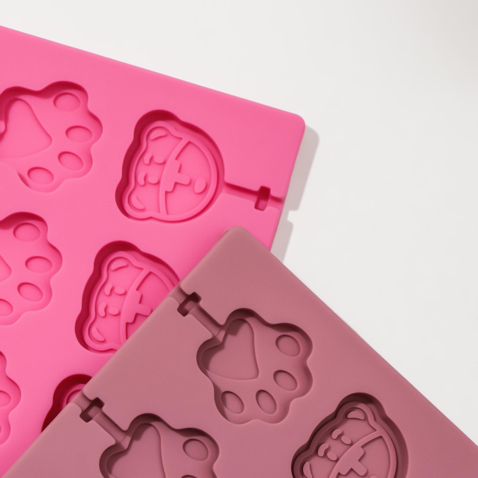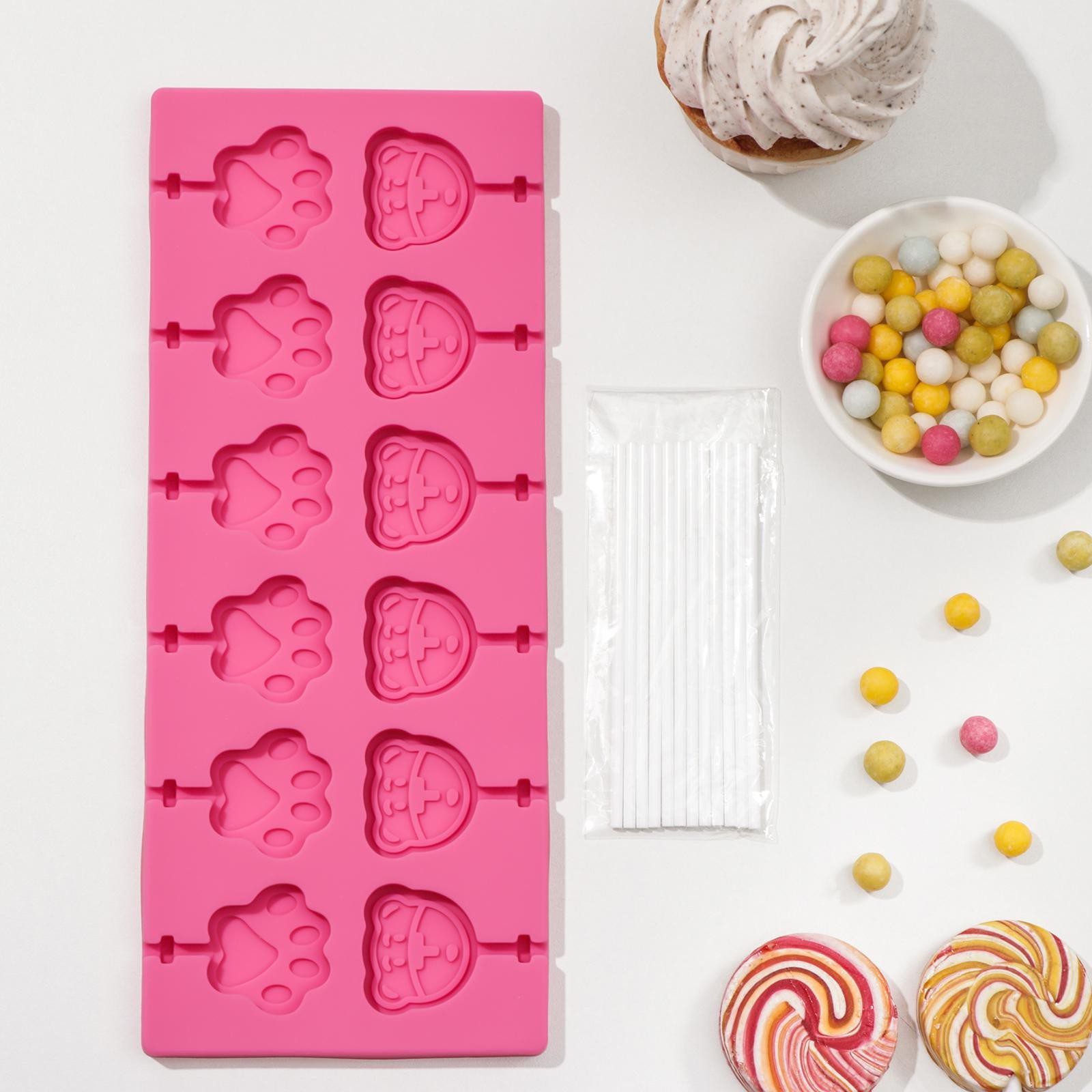 Форма силиконовая для леденцов доляна «мишка», 25x10,5x1 см, 12 ячеек (3x3,3 см), с палочками, цвет микс