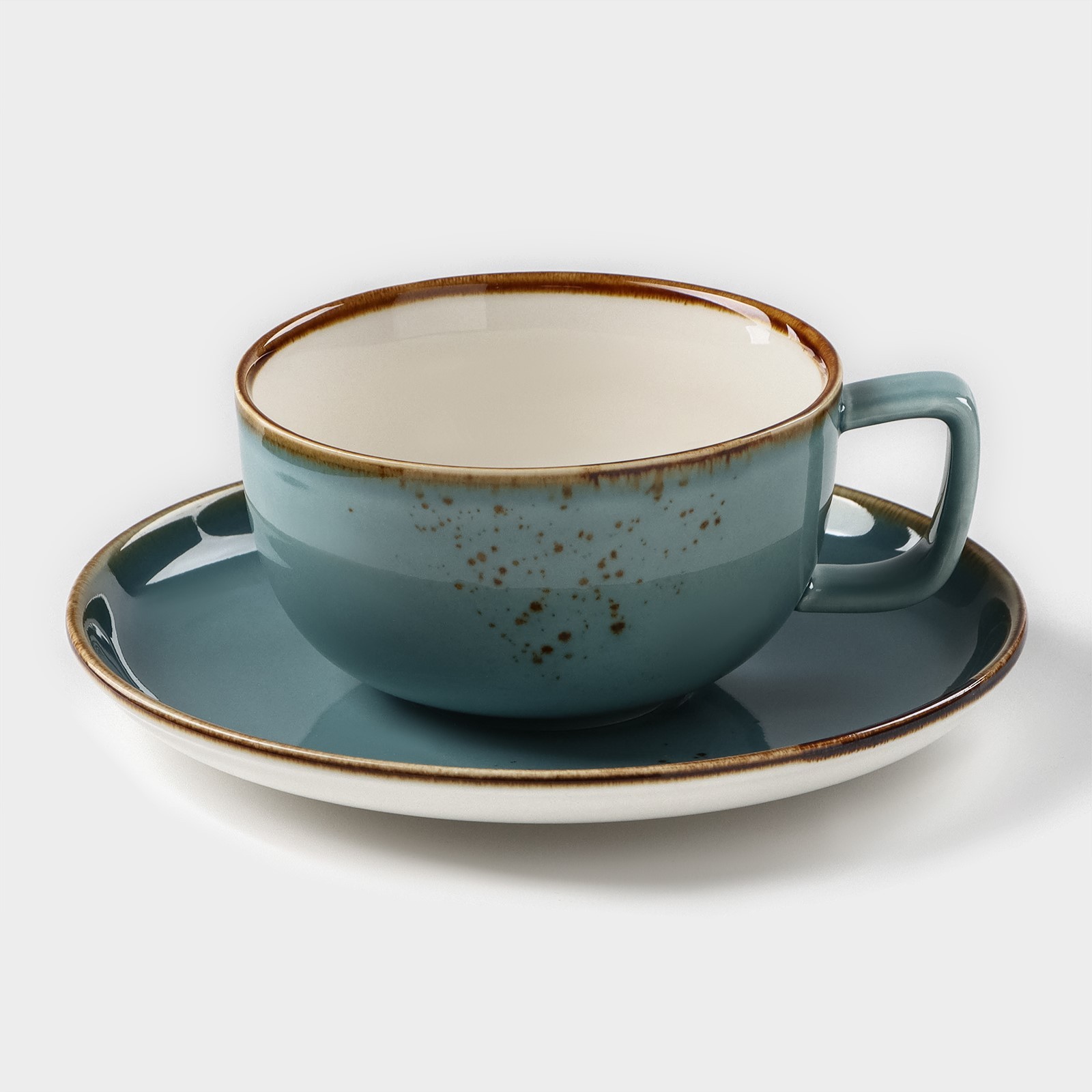 Чайная пара фарфоровая Magistro «церера», 2 предмета: чашка 250 мл, блюдце D=16,5 см, цвет голубой