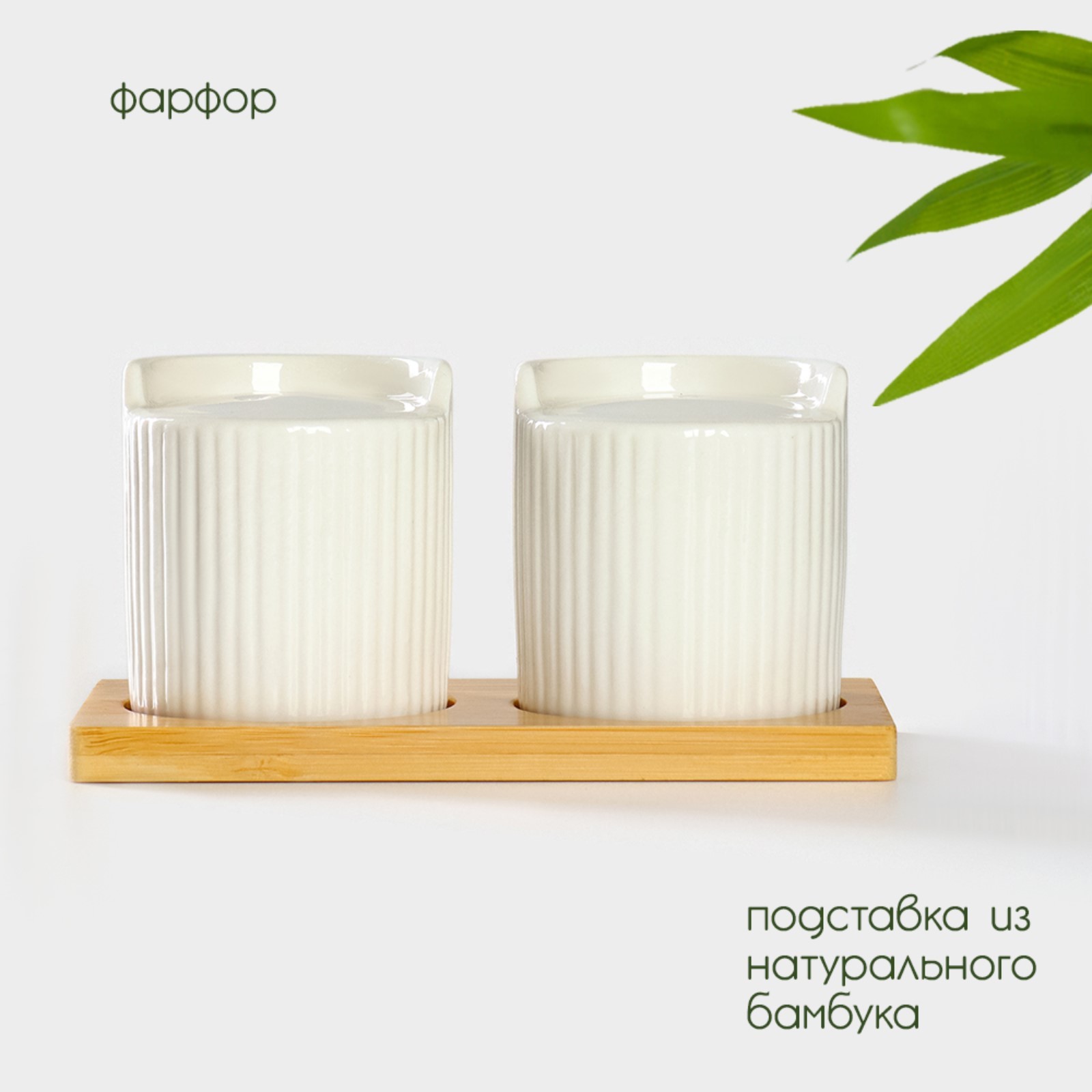 Набор фарфоровый для специй на подставке из бамбука Bellatenero «эстет. грани», 2 предмета: солонка 100 мл, перечница 100 мл, цв