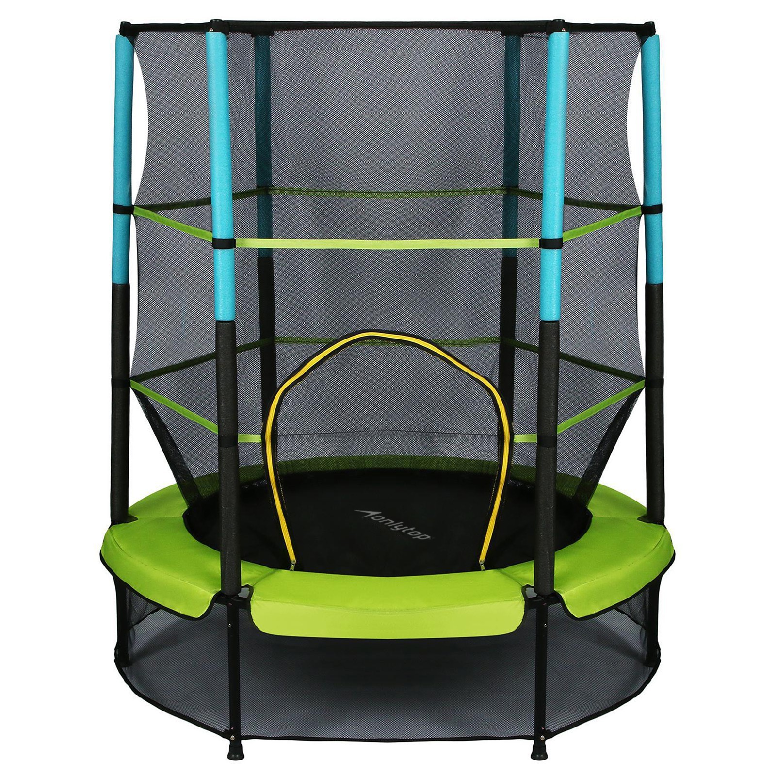 Батут onlytop, d=140 см, высота сетки 125 см, цвет зелёный. Характеристики Диаметр батута: 1400 мм. Диаметр труб рамы батута: 6 штук диаметром 25 мм и толщиной стенок 1 мм. Прыжковое полотно: полипропилен чёрного цвета. Защита: ткань из тонкоплёночного ПВХ – защитный кожух батута, вспененный полиэтилен толщиной 6 мм – защитные чехлы на трубы рамы. Амортизирующие жгуты: 30 штук. Ножки батута: 6 штук диаметром 25 мм с толщиной стенок 1, 2 мм. Материал сетки: PE. Количество оградительных стенок: 6 штук. Покрытие стоек оградительной стенки: вспененный полиэтилен. Размер стоек оградительной стенки: диаметр 25 мм с толщиной стенок 1 мм. Оцинкованная сталь. Цвет: Зелёный Диаметр, см: 140 Максимально допустимый вес, кг: 45 Сетка: Да Особенности: Страховочная сетка Особенности: Нижняя сетка Назначение: Универсальный  развернуть описание ▼