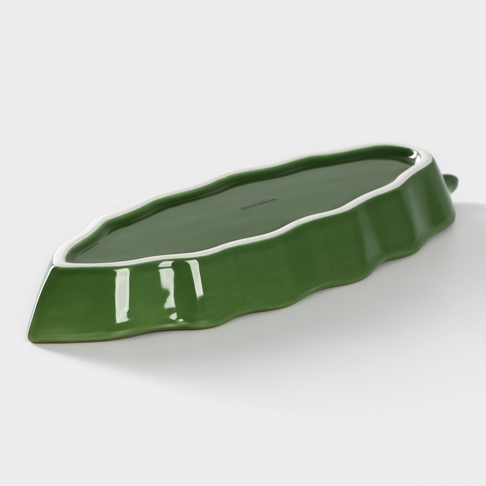 Блюдо сервировочное доляна «лист», 25x9x2,8 см, цвет зелёный