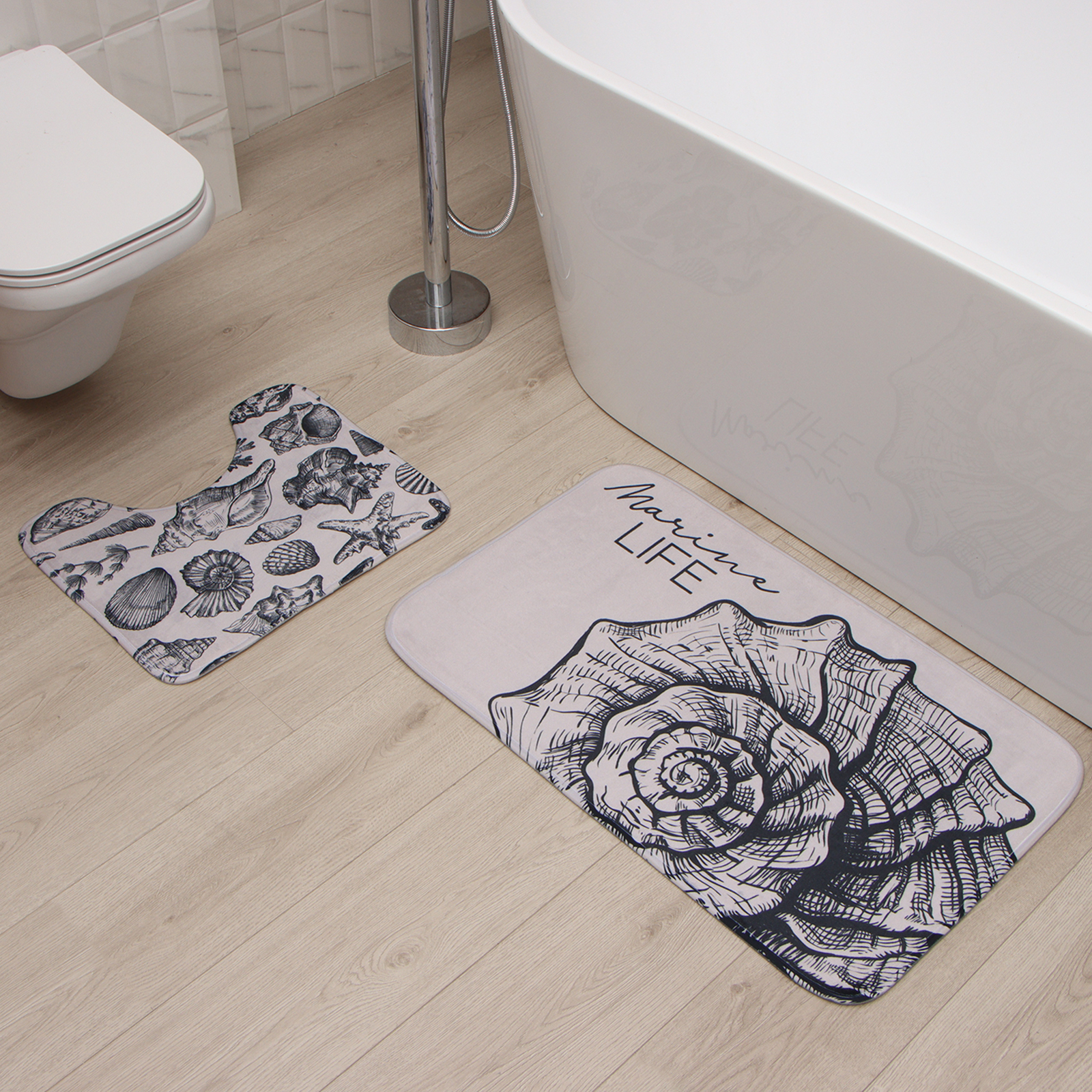 Набор ковриков для ванной этель "Marine Life" 2 шт, 80х50 см, 50х40 см, велюр