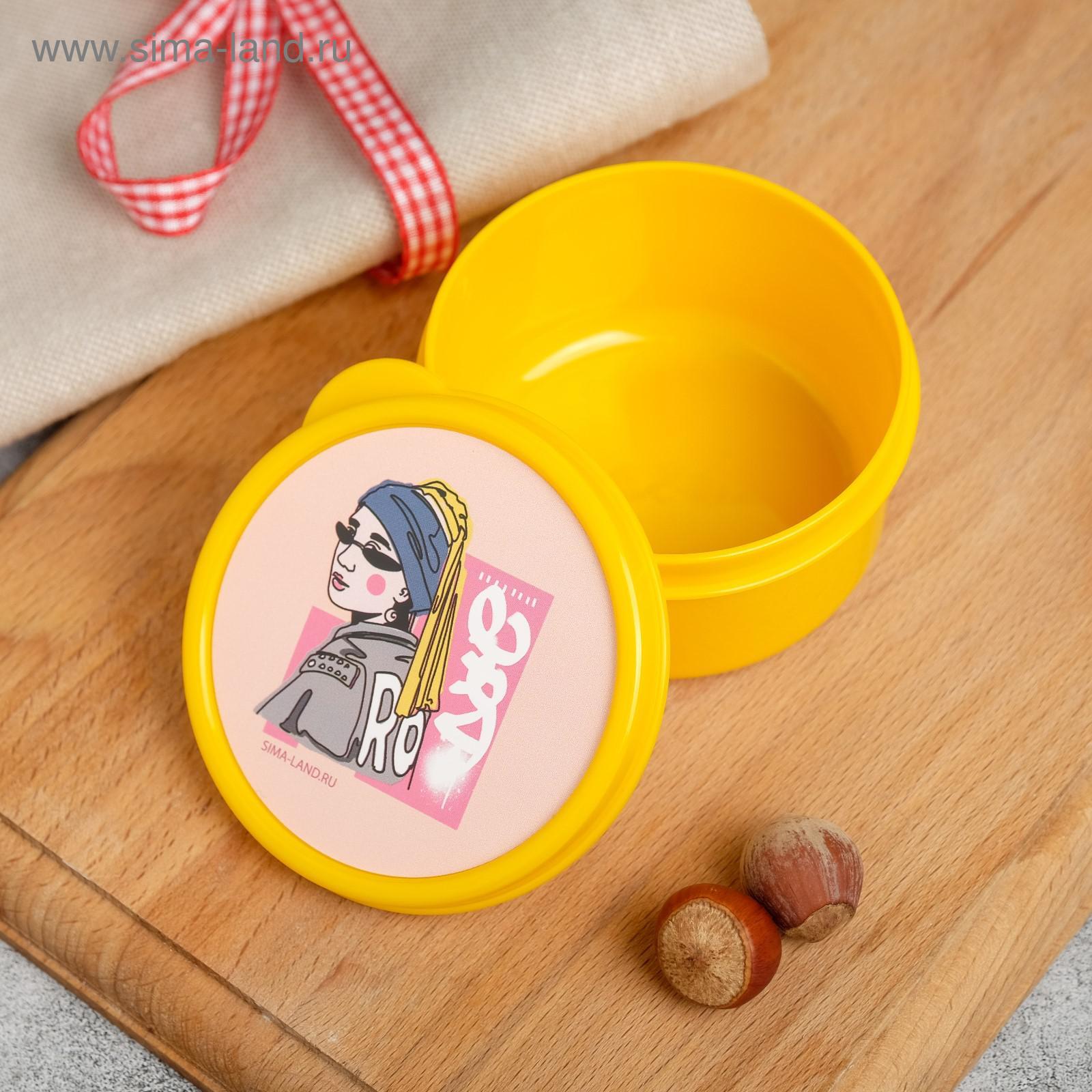 Ланч бокс круглый «девушка», 150 мл. Ланч-бокс от торговой марки FoodVibes - это яркий и стильный аксессуар, который станет незаменимым помощником в повседневной жизни. Изготовленный из качественного пластика, этот ланч-бокс совмещает в себе прочность, легкость и долговечность. С размерами 4, 5 см х 8 см х 8, 5 см и весом всего 21 г, этот мини-ланч-бокс идеально подходит для переноса небольших перекусов или десертов. Его круглая форма и объем в 150 мл обеспечивают удобство использования и хранения. Герметичная крышка гарантирует сохранность содержимого, а возможность использования в СВЧ-печи делает его еще более функциональным. Яркий дизайн крышки придает ланч-боксу неповторимый и модный вид. Ланч-бокс от FoodVibes - это отличный выбор не только для личного использования, но и в подарок. С его помощью вы можете выразить свою заботу и внимание, подарив его близким и друзьям. Этот ланч-бокс не только удобен в использовании, но и придает яркость и оригинальность вашему стилю. Цвет: Жёлтый Форма: Цилиндрическая Объём, л: 0.15 Объём, мл: 150 Материал: Полипропилен Герметичная крышка: Да Наличие столовых приборов: Нет Температурное ограничение: Нет Можно мыть в посудомоечной машине: Да Можно использовать в СВЧ-печи: Да Форма: Круг, шар, цилиндр  развернуть описание ▼