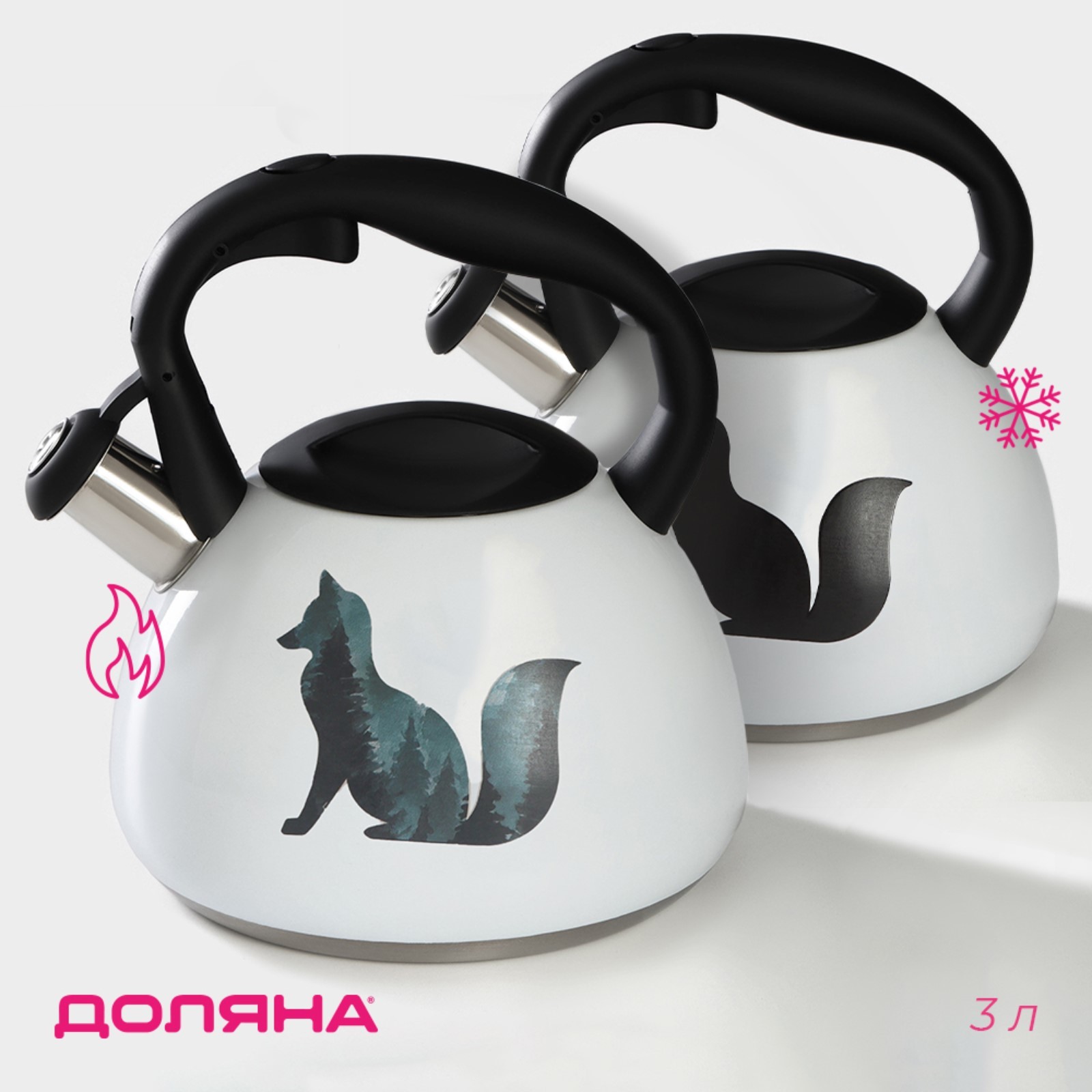 Чайник со свистком из нержавеющей стали доляна «лиса», 3 л, с индикатором нагрева