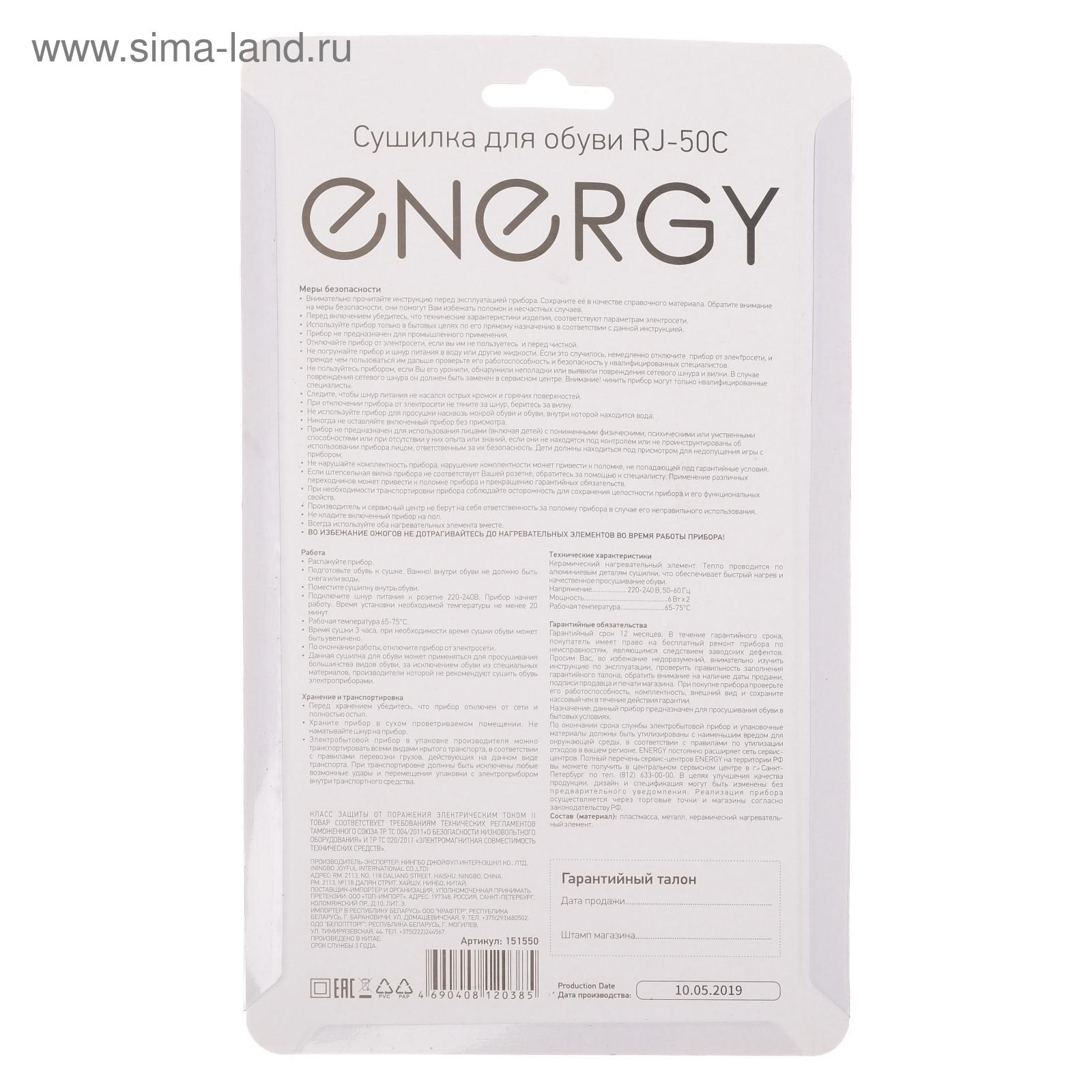Сушилка для обуви Energy Rj-50c, 12 вт, 65-75°c