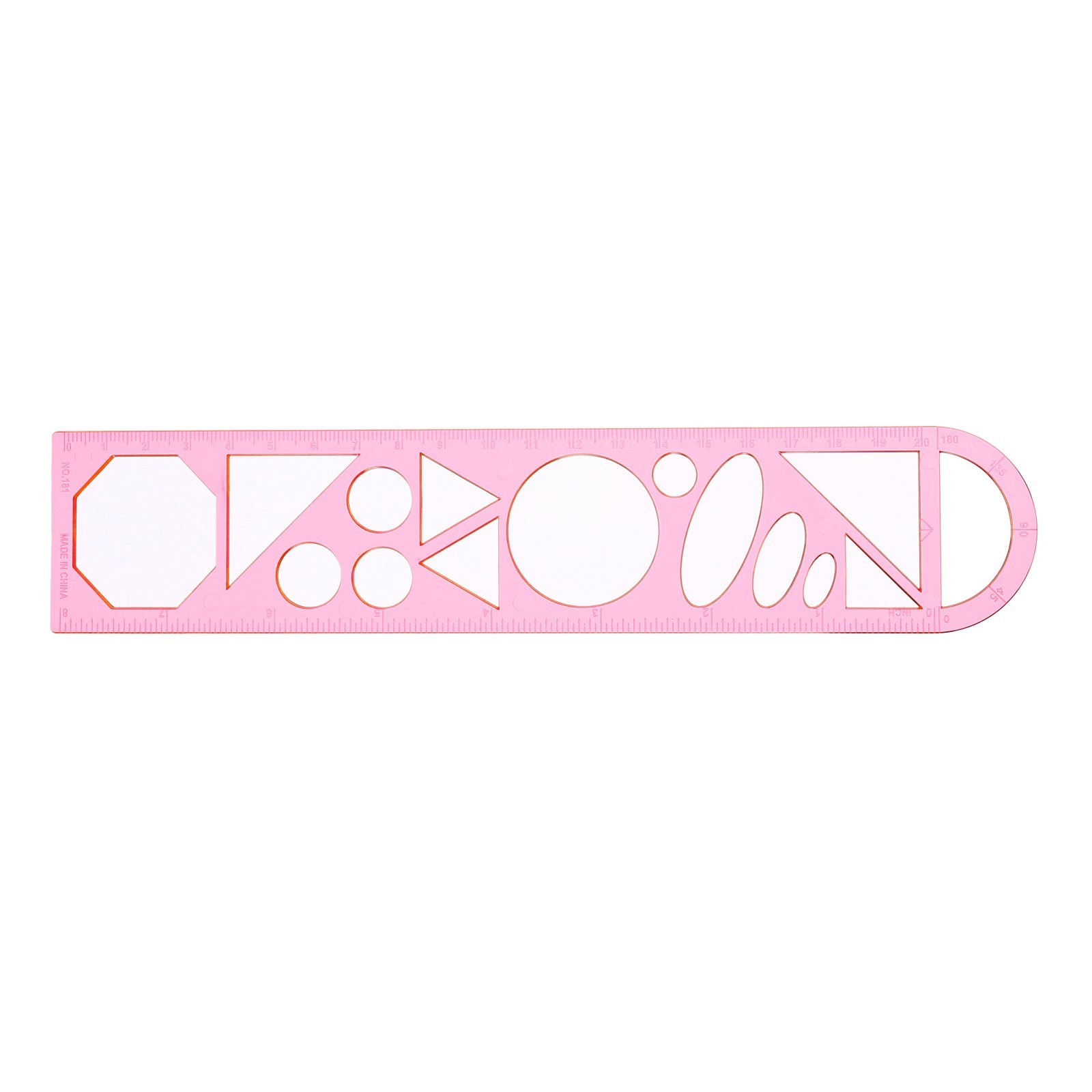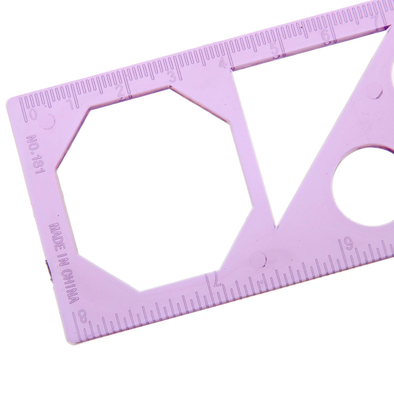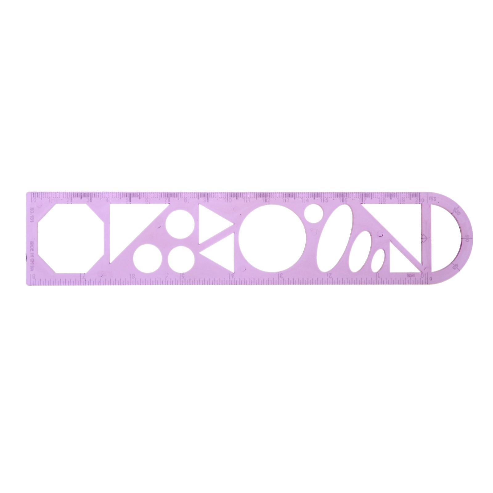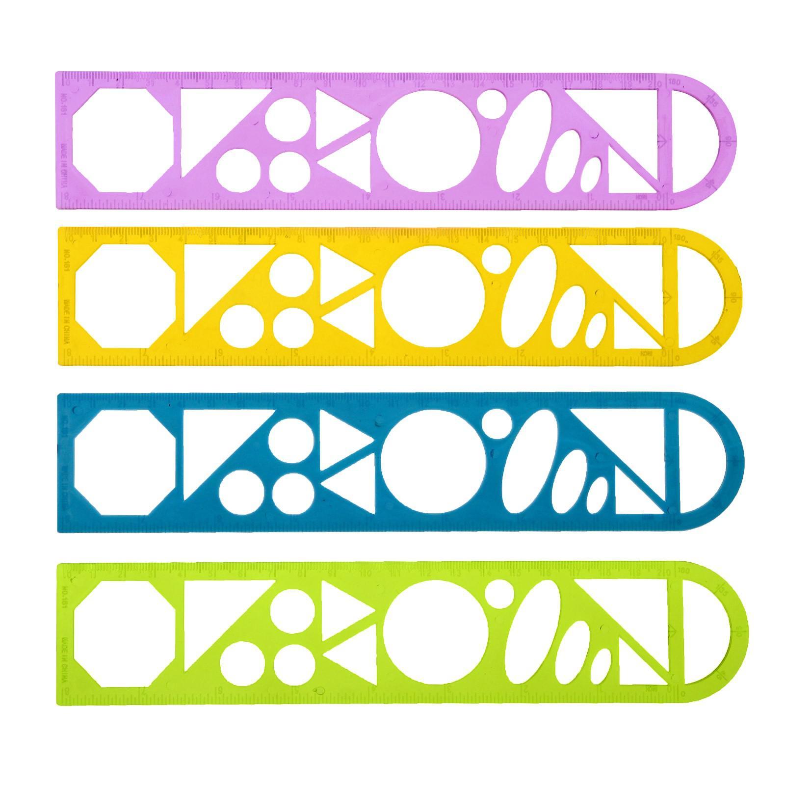 Линейка трафарет - транспортир, 3 в 1, 20 см, тонированная, флуоресцентная, микс