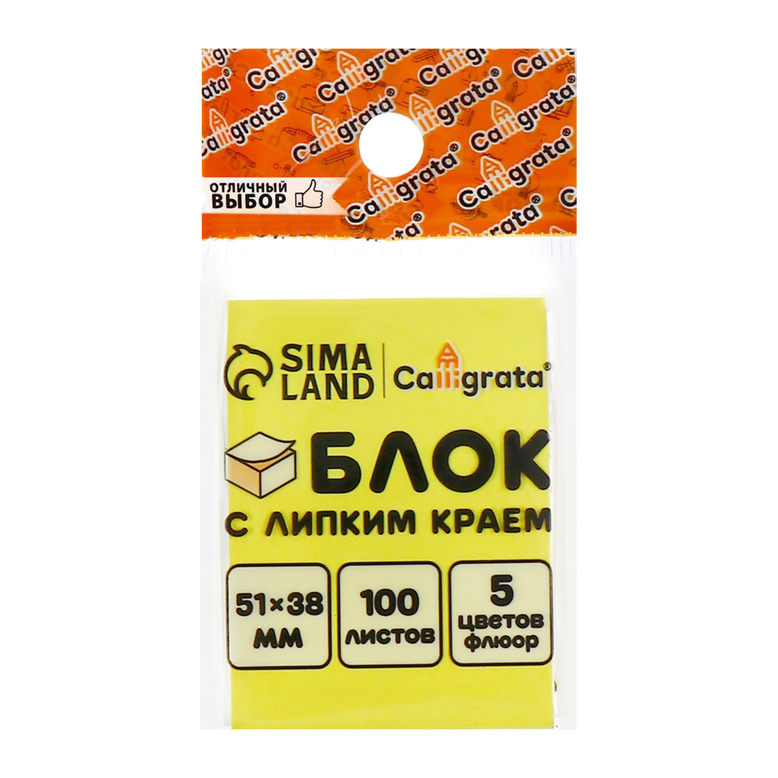 Блок с липким краем, 100 листов, 5 цветов, флуоресцентный