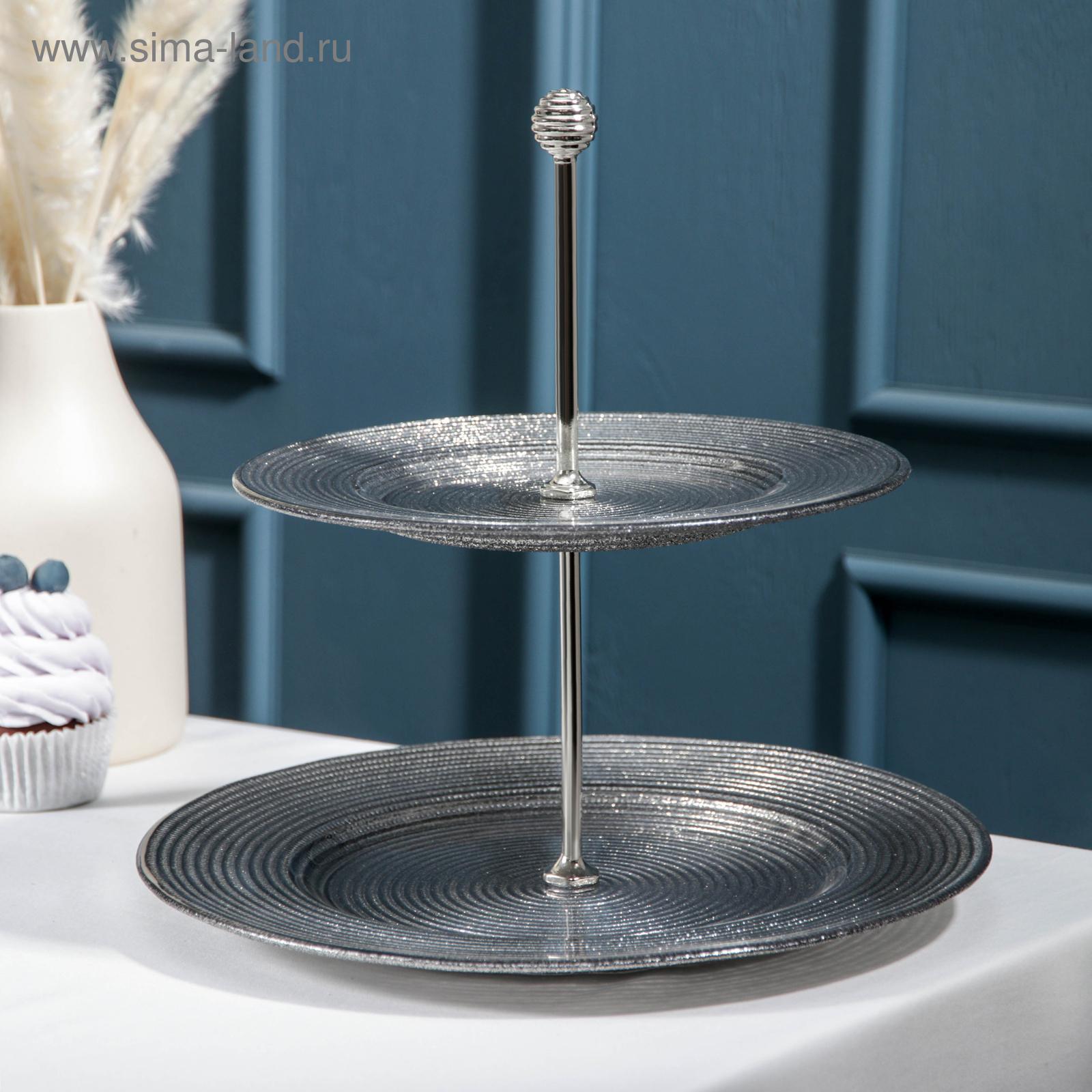 Блюдо 2-х ярусное «мерцание ночи», D=21/28 см, цвет серебряный
