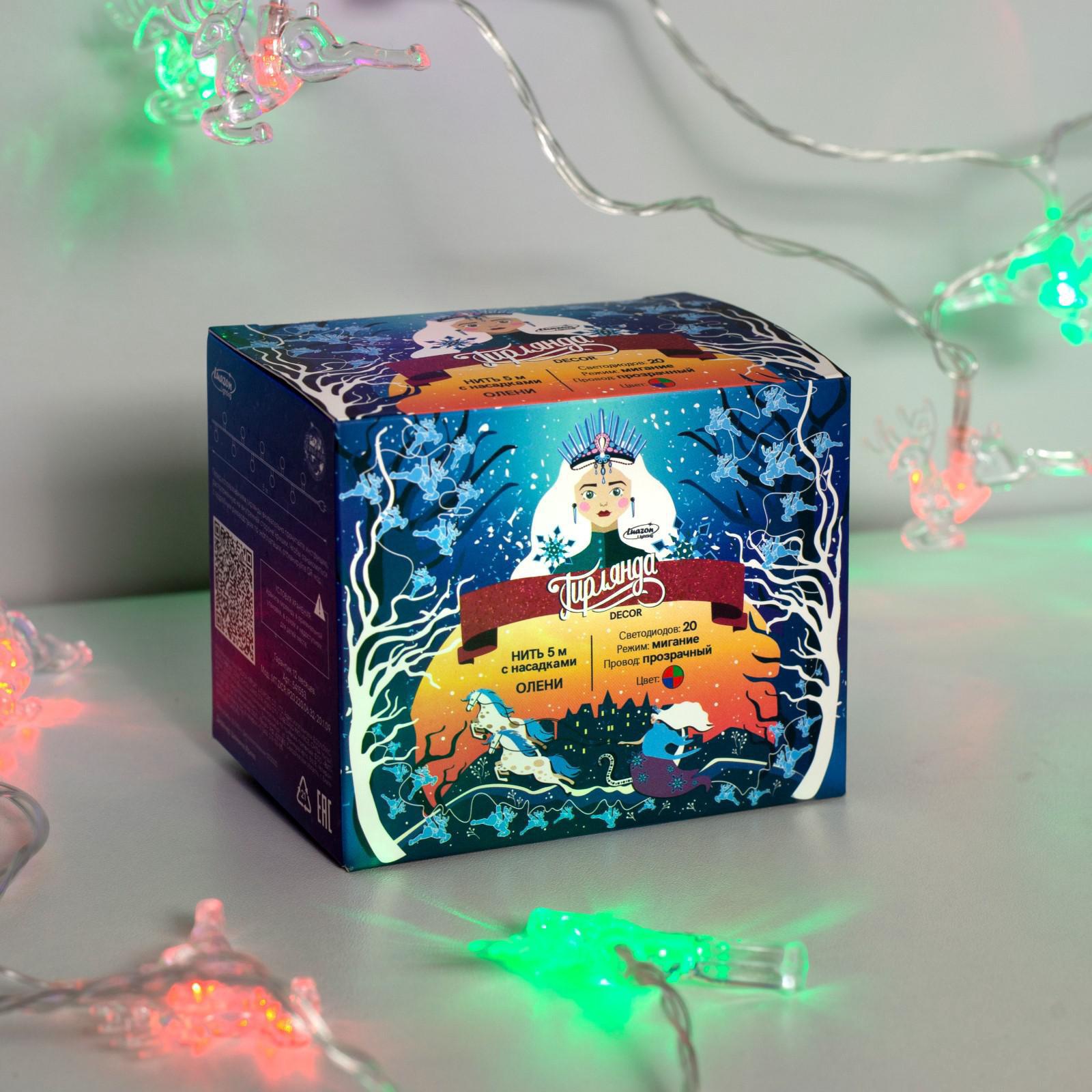 Гирлянда «нить» 5 м с насадками «олени», Ip20, прозрачная нить, 20 Led, свечение мульти (rg/rb), мигание, 220 в