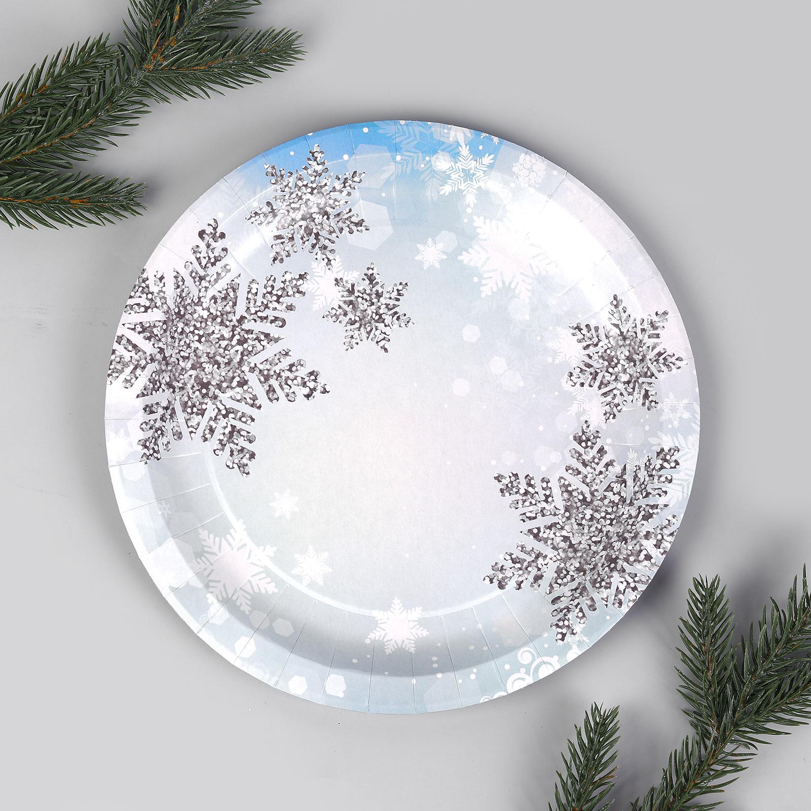 Тарелка бумажная «снежинки», 23 см, набор 6 шт.