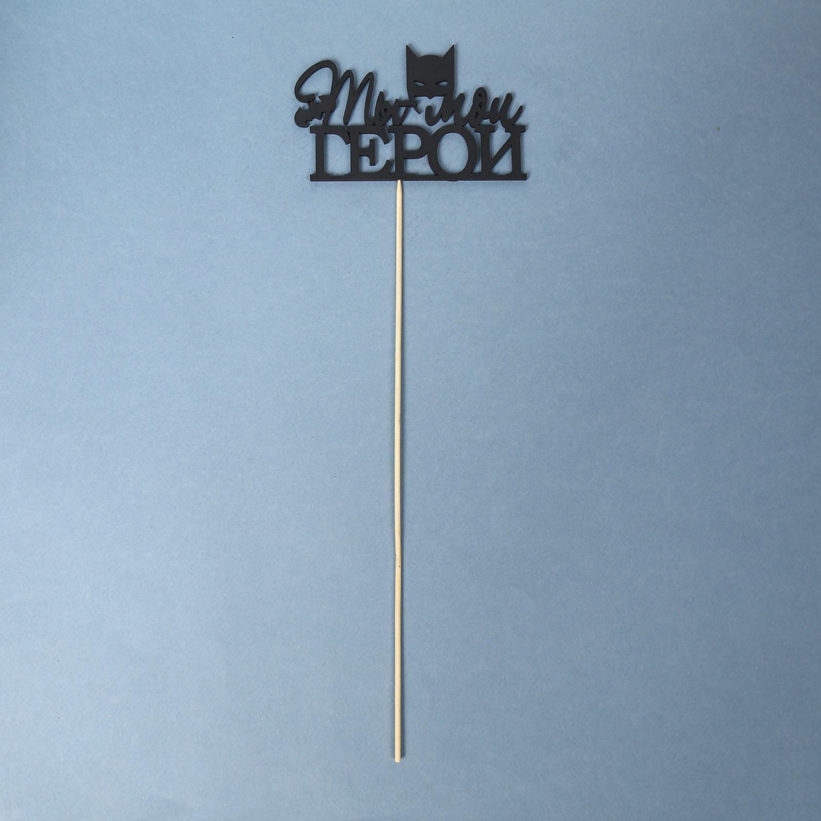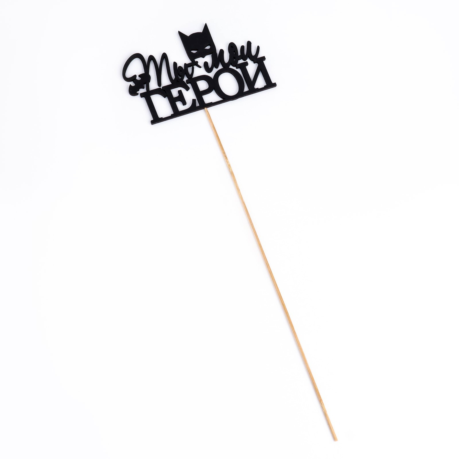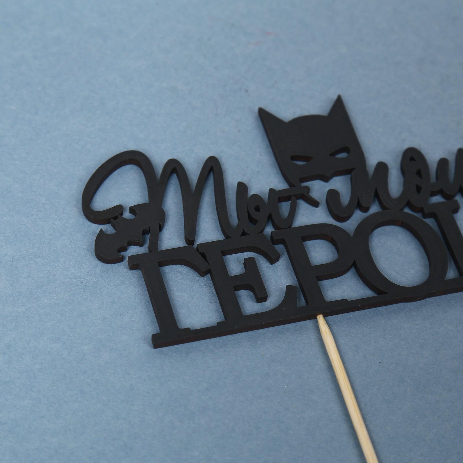 Топпер "ты мой герой" чёрный 12х7,4 см
