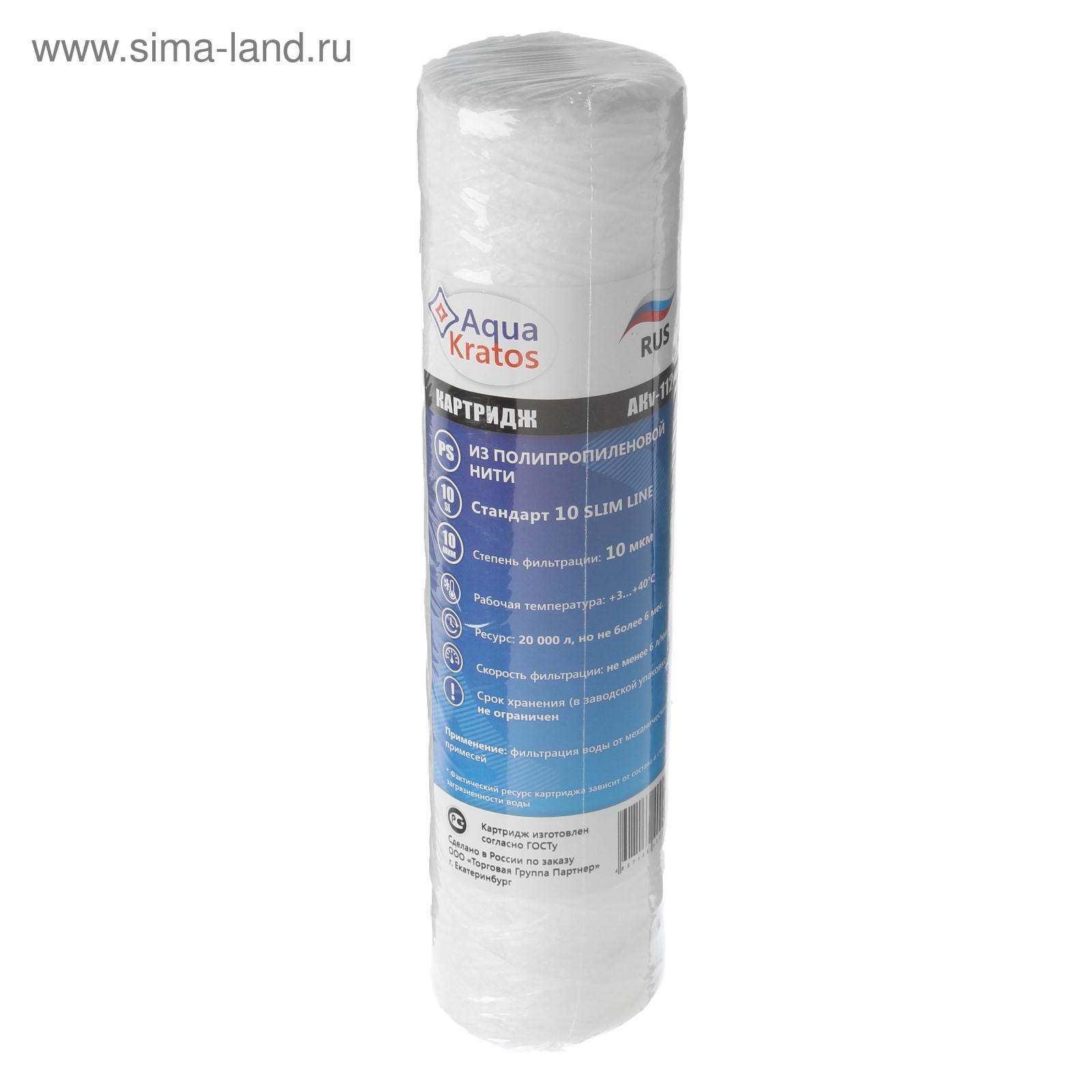 Картридж сменный Aquakratos акv-112, Ps-10, нитяной, для холодной воды, 10 мкм