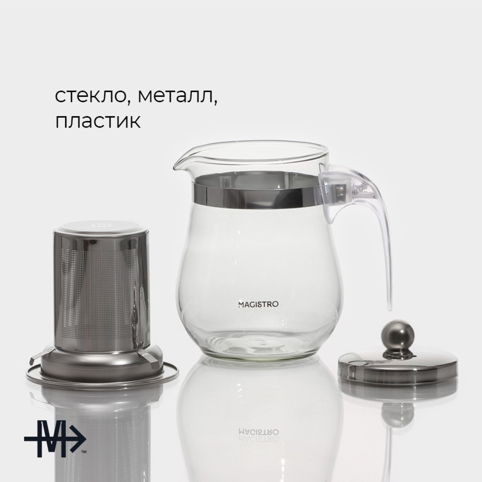 Чайник стеклянный заварочный Magistro «шейди», 350 мл, с металлическим ситом, пластиковая колба
