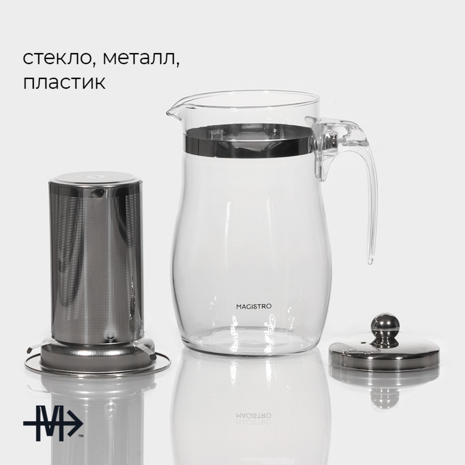 Чайник стеклянный заварочный Magistro «шейди», 750 мл, с металлическим ситом, пластиковая колба