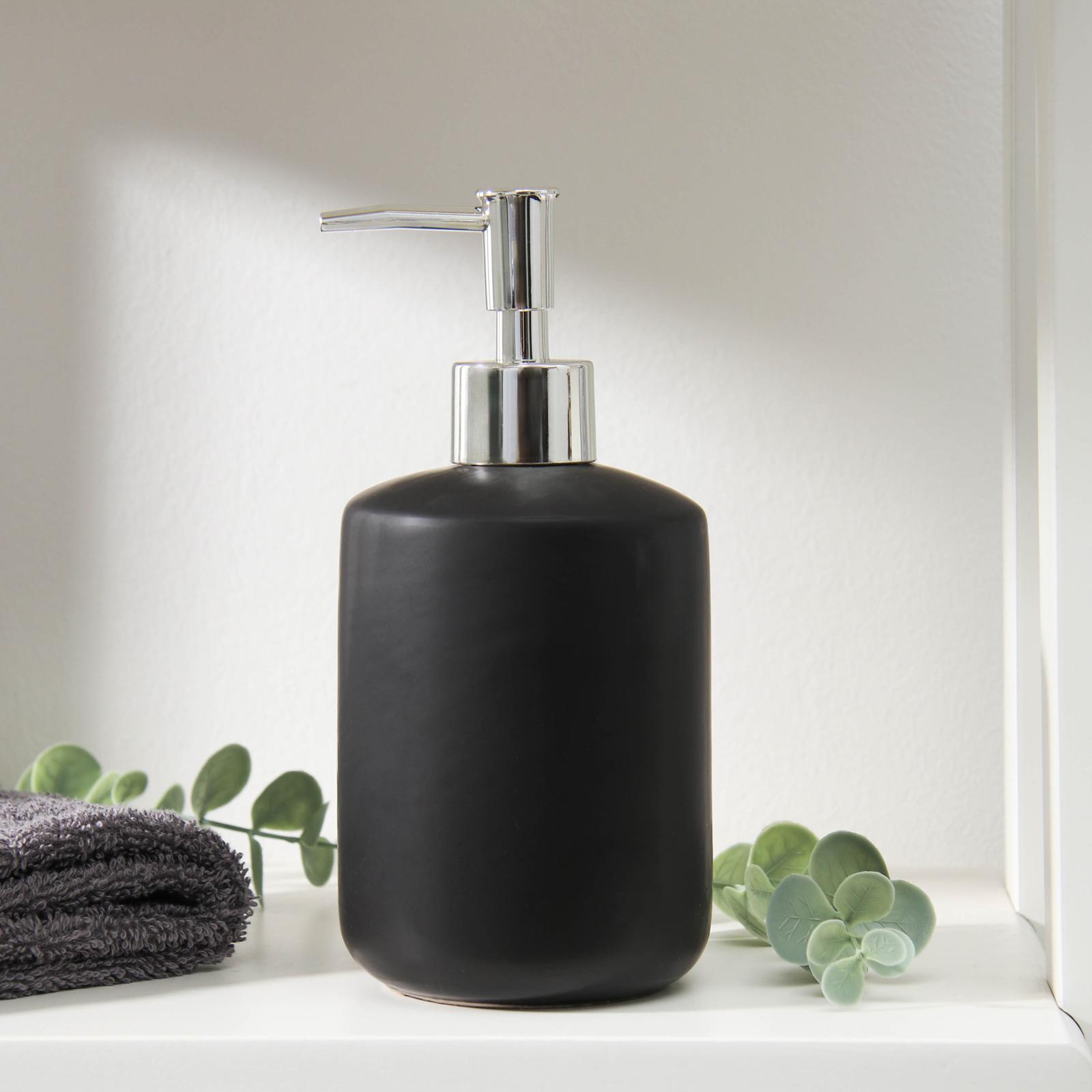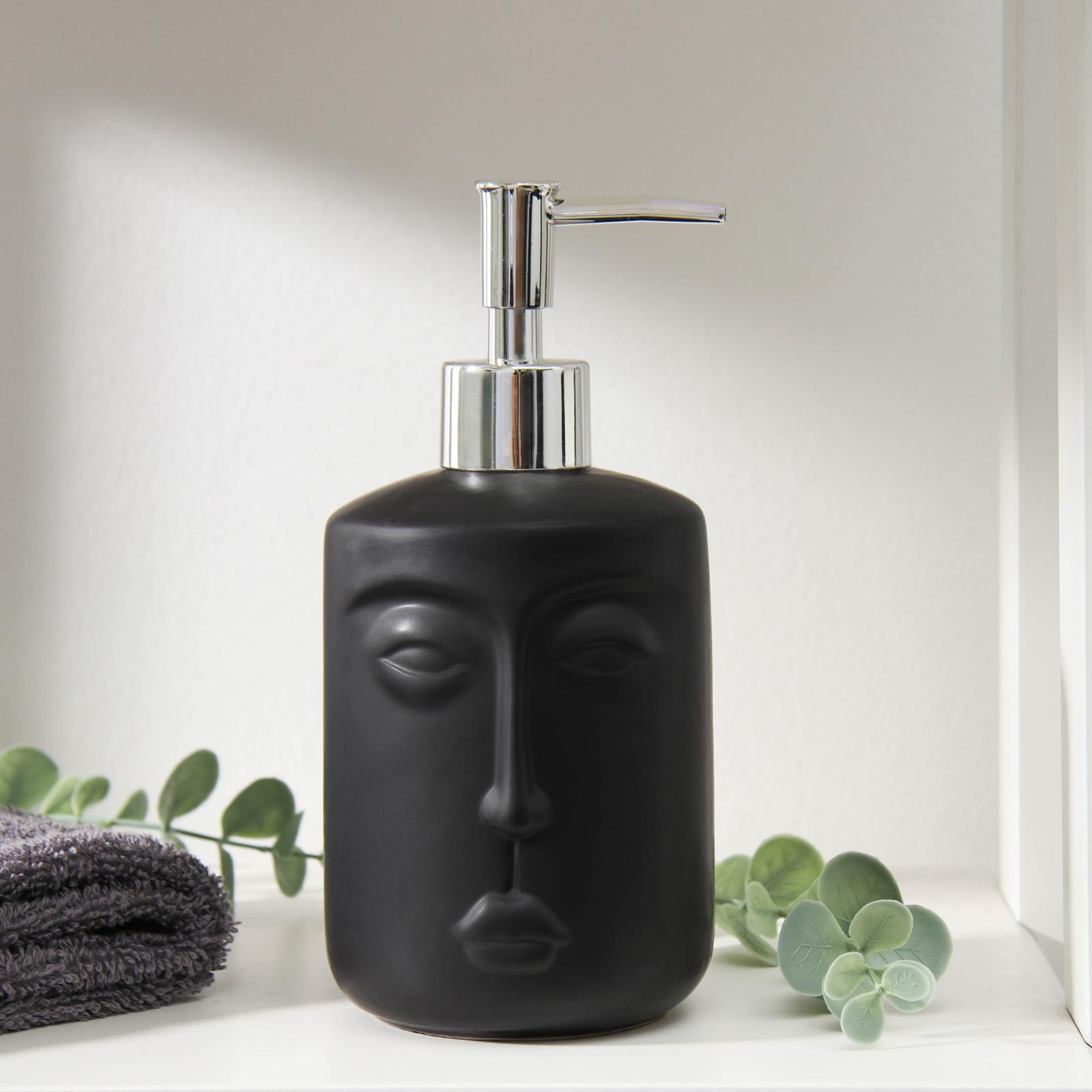 Дозатор для жидкого мыла «тотем», 330 мл, цвет чёрный. Диспенсер для жидкого мыла «Тотем» – стильный аксессуар, который просто незаменим на кухне или в ванной. Благодаря необычному и эргономичному дизайну он идеально дополнит любой интерьер. Упаковка от жидкого мыла или моющего средства больше не будет создавать визуальный шум. Кроме того, дозаторы помогают экономично расходовать мыло. Цвет: Чёрный Объём, мл: 330 tnved: 6912008500 Материал: Керамика Наличие губки/щётки: Нет Настенные: Нет Запрет реализации по сегментам: 00000000485 Способ заправки: Наливной Механизм управления: Ручной  развернуть описание ▼