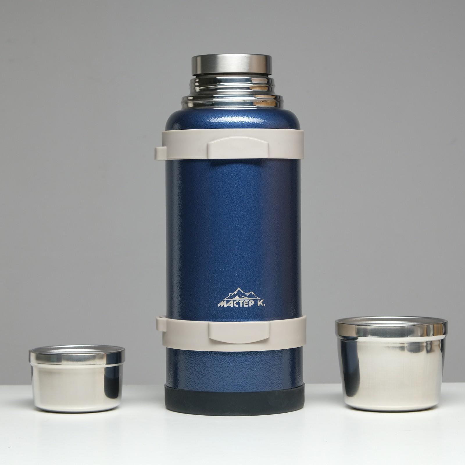 Термос, 3.2 л, Volume "мастер к", с двумя кружками и ситечком, сохраняет тепло 72 ч, синий