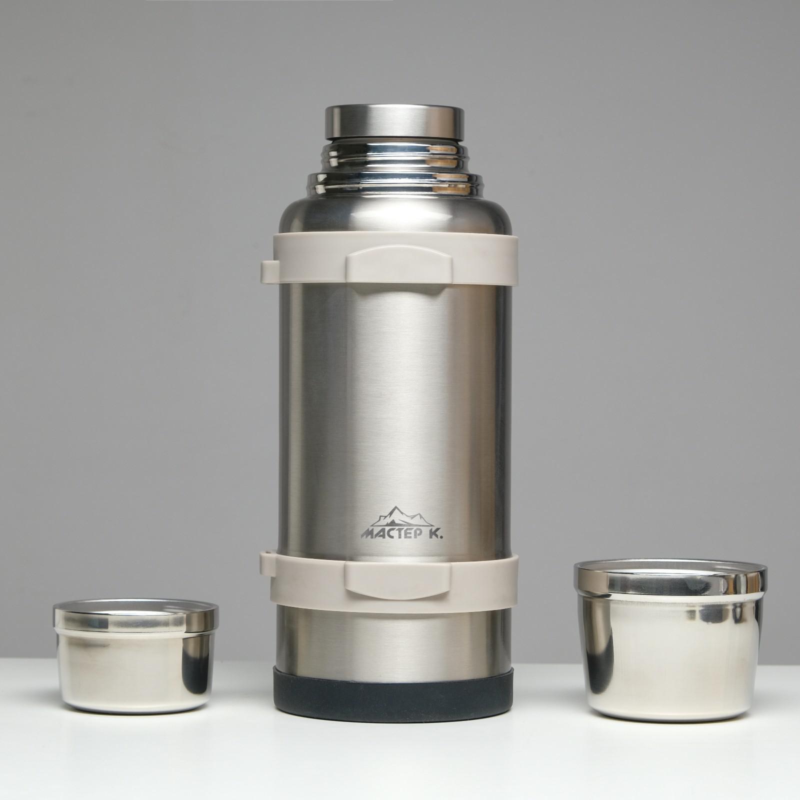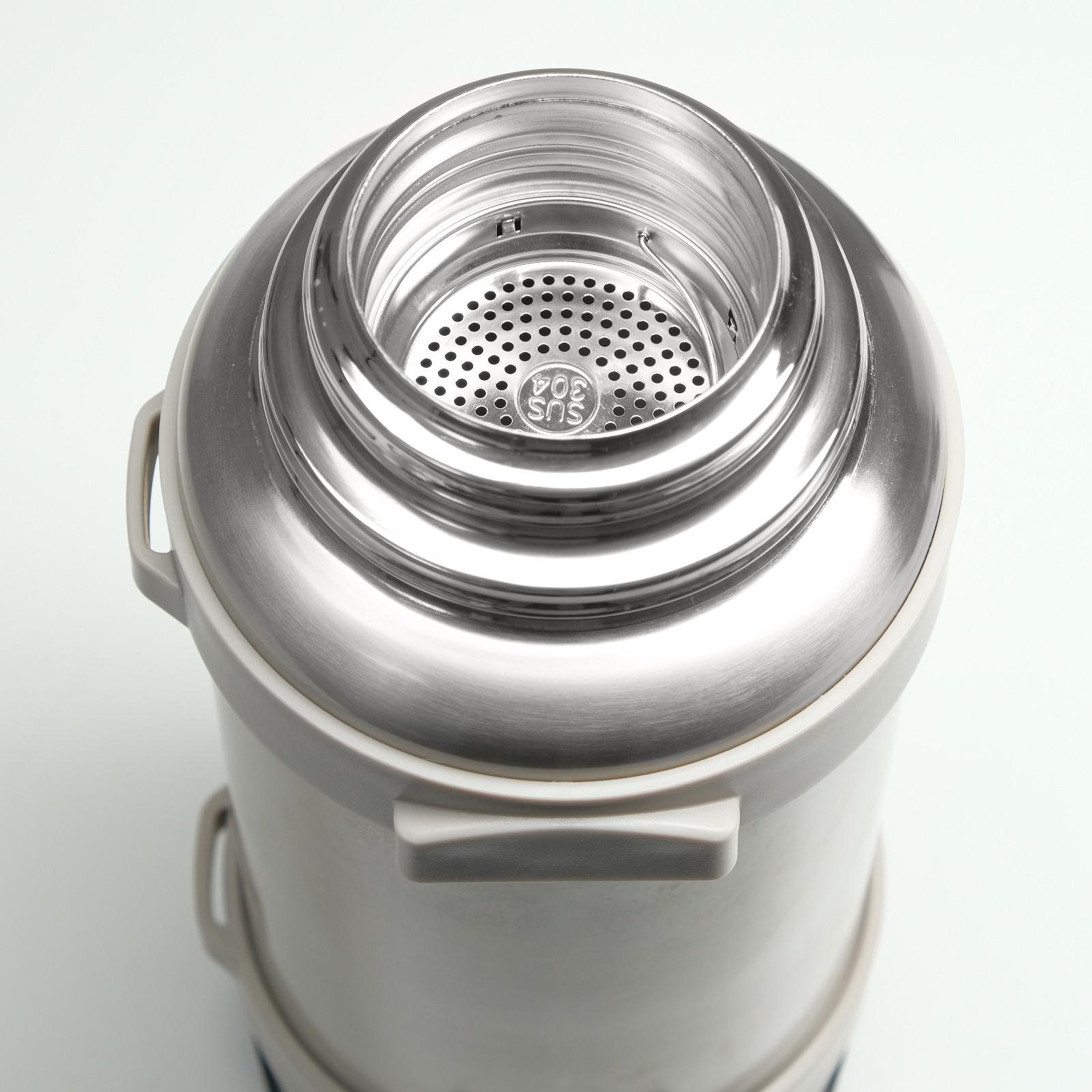 Термос, 3.2 л, Volume "мастер к", с двумя кружками и ситечком, сохраняет тепло 72 ч, серебристый 542