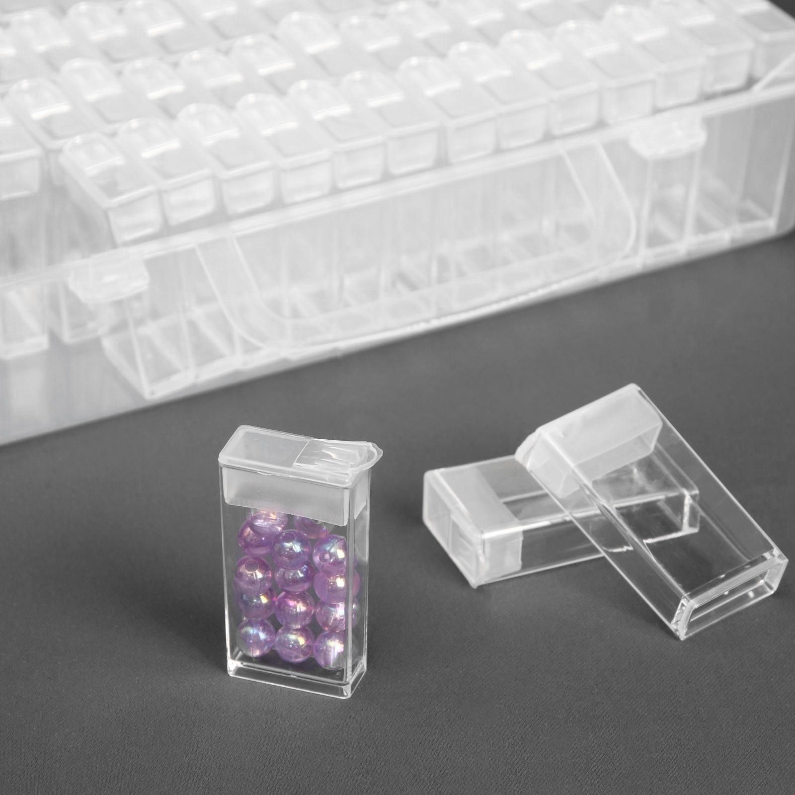 Набор баночек для рукоделия, 64 баночки, 1,5 X 3 X 5 см, в контейнере, 13 X 22 X 5 см, с наклейками, цвет прозрачный
