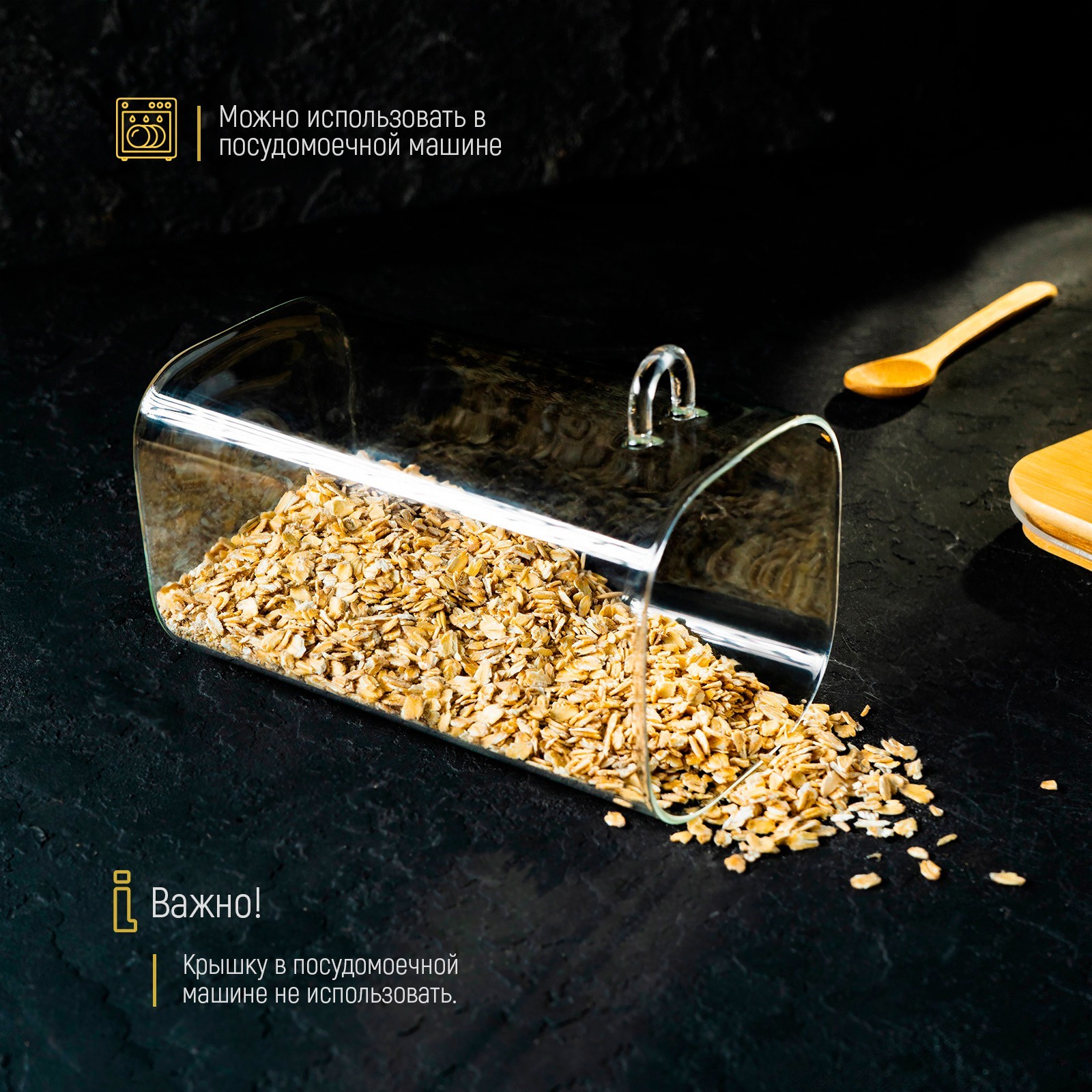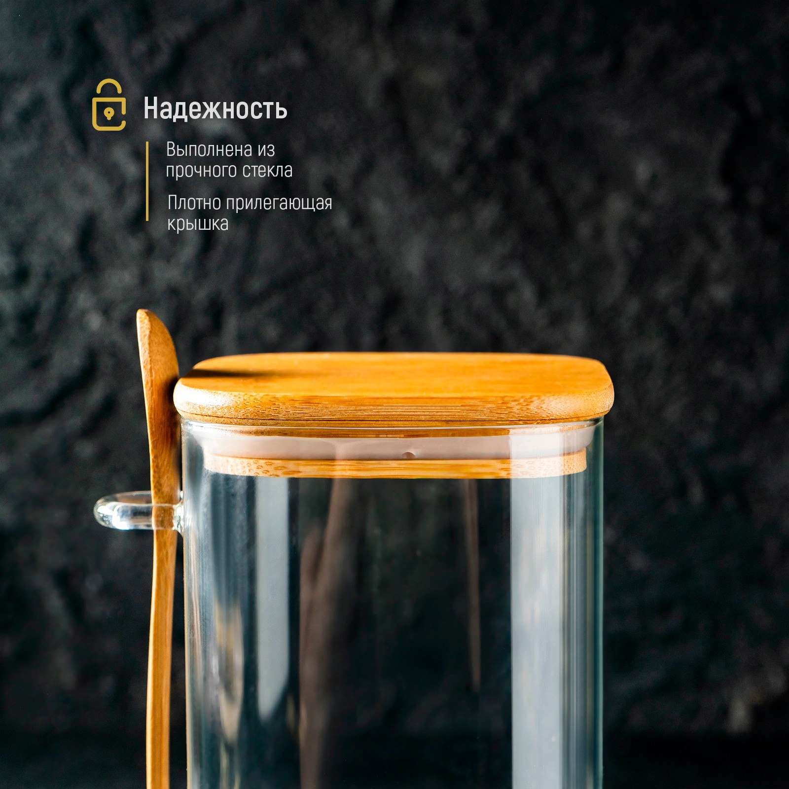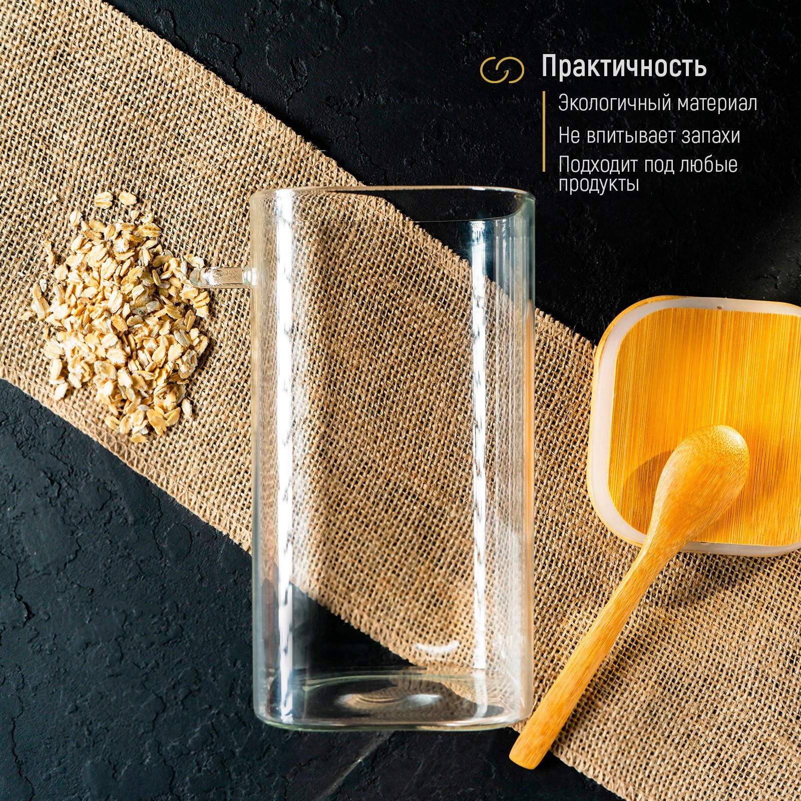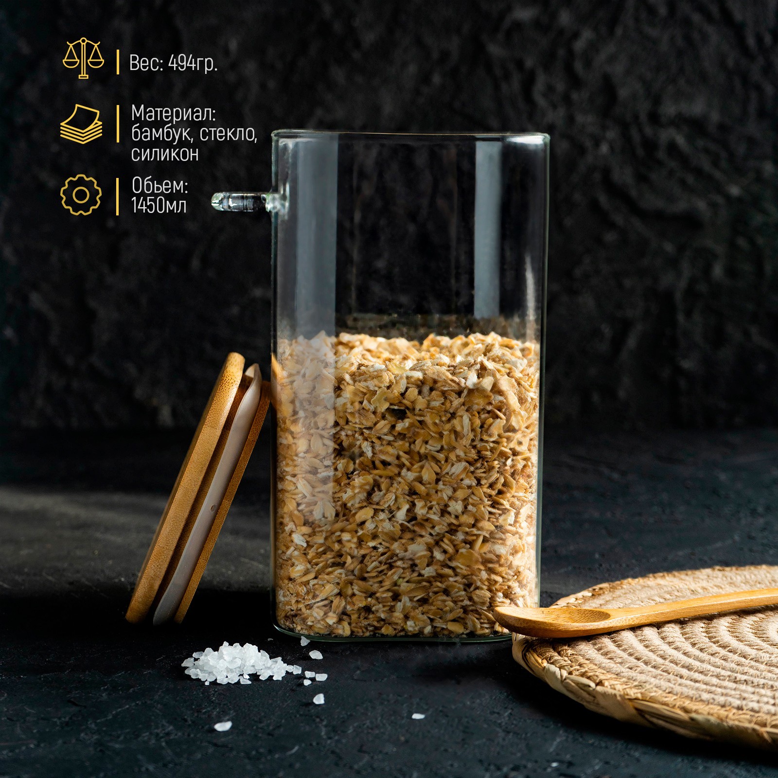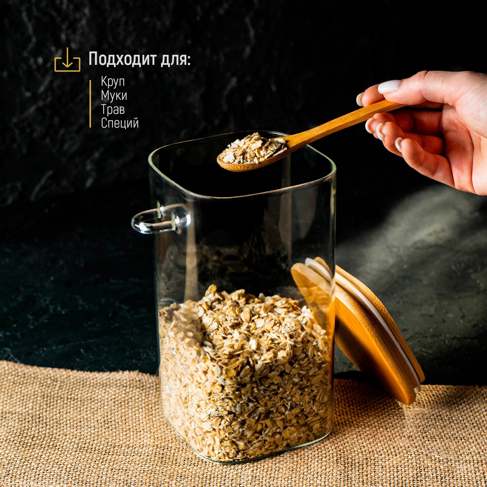 Банка стеклянная для сыпучих продуктов с бамбуковой крышкой и ложкой «эко», 1,45 л, 11,5x10x19 см