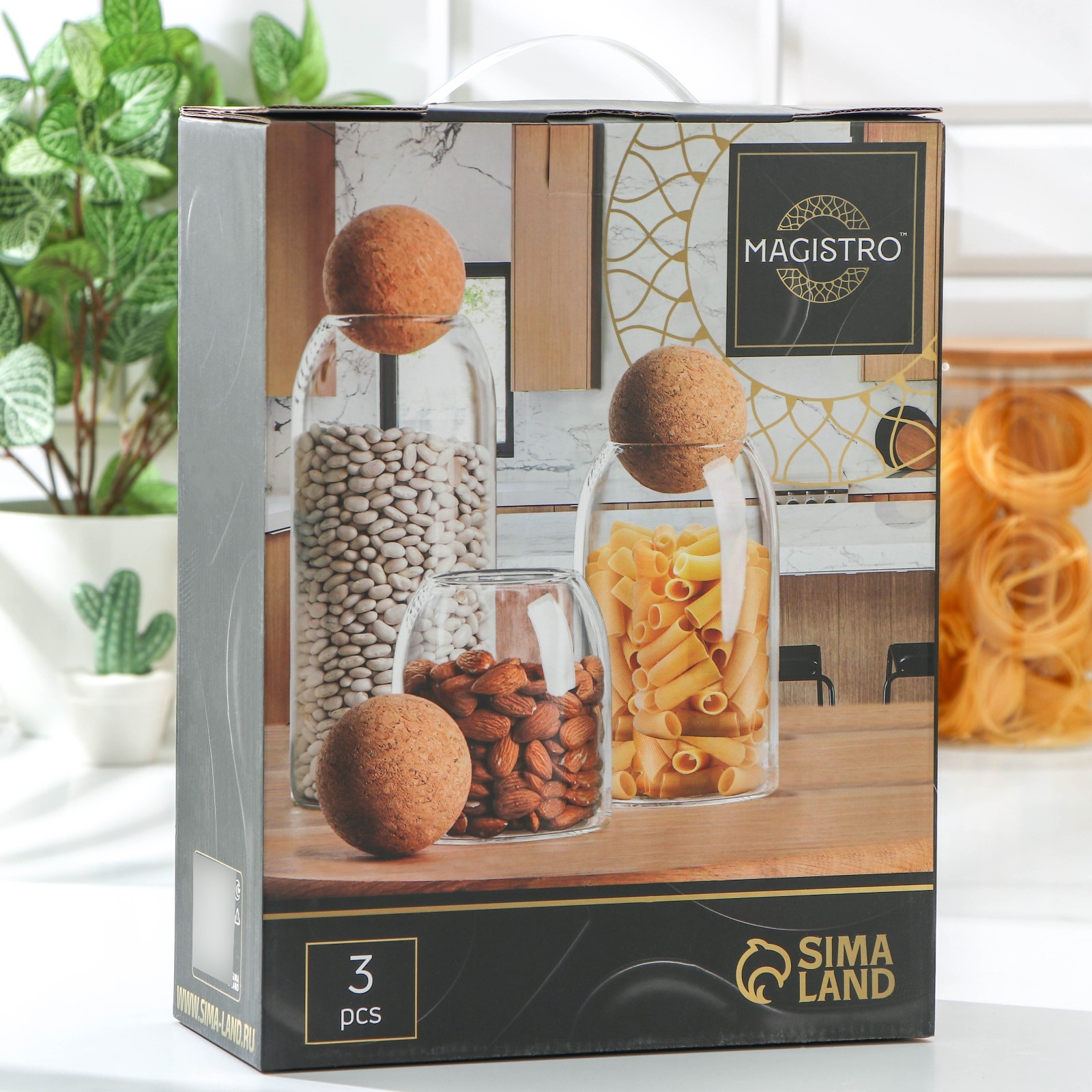 Набор банок стеклянных для сыпучих продуктов Magistro «эко», 3 предмета: 450/700/1000 мл
