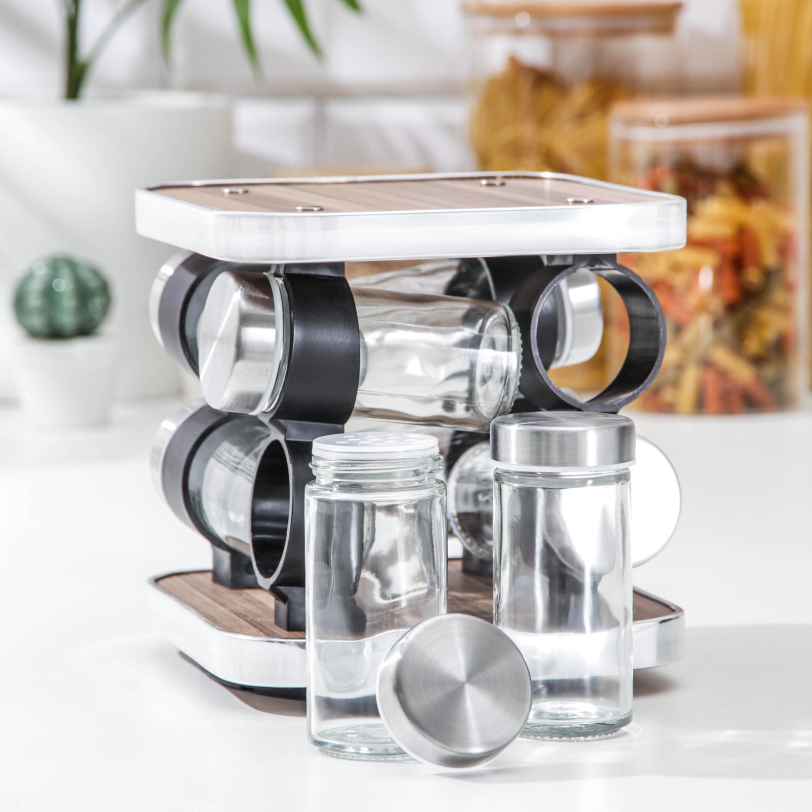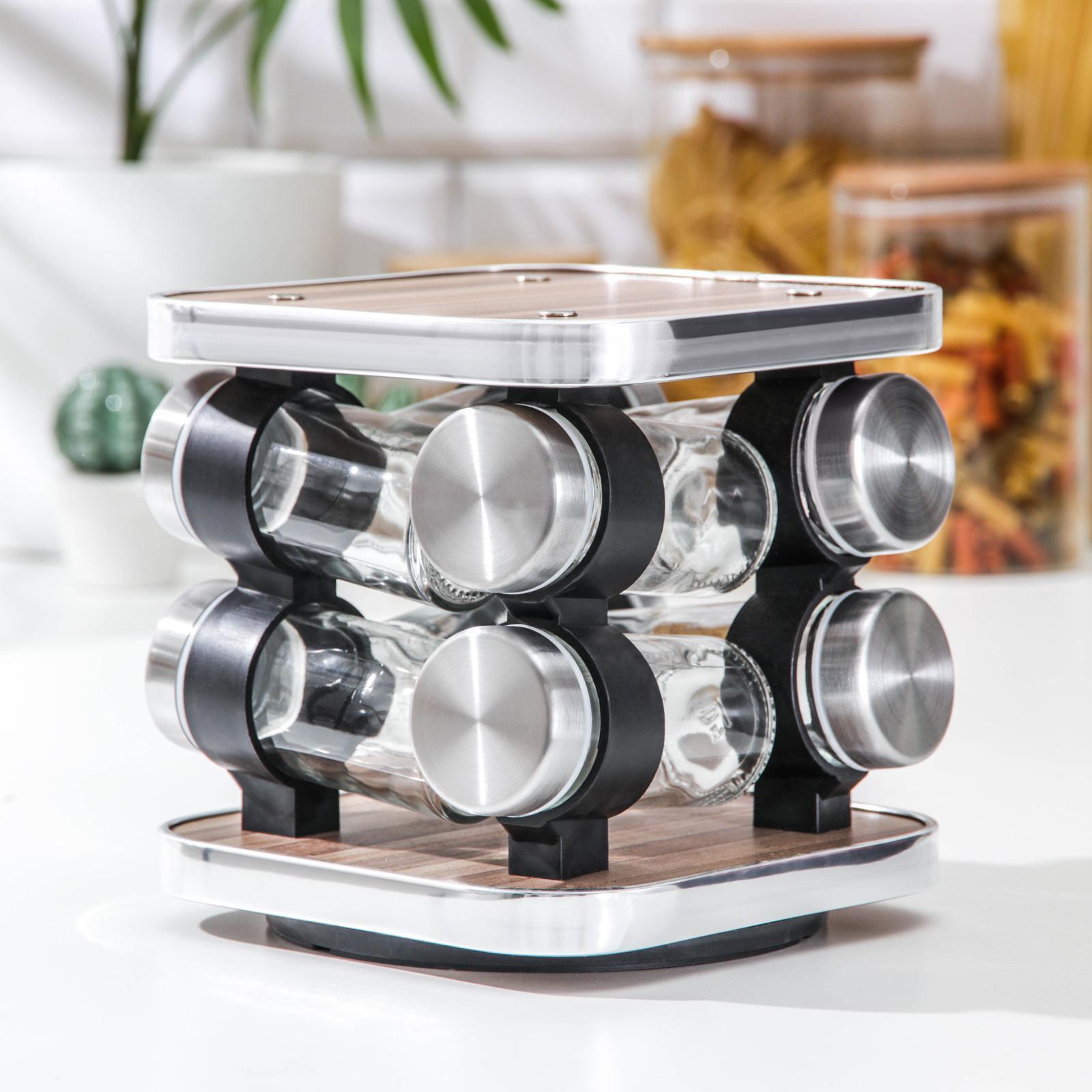 Набор для специй из стекла на подставке «модерн», 17,5x8x18 см, 90 мл, 4x9,5 см, 8 шт