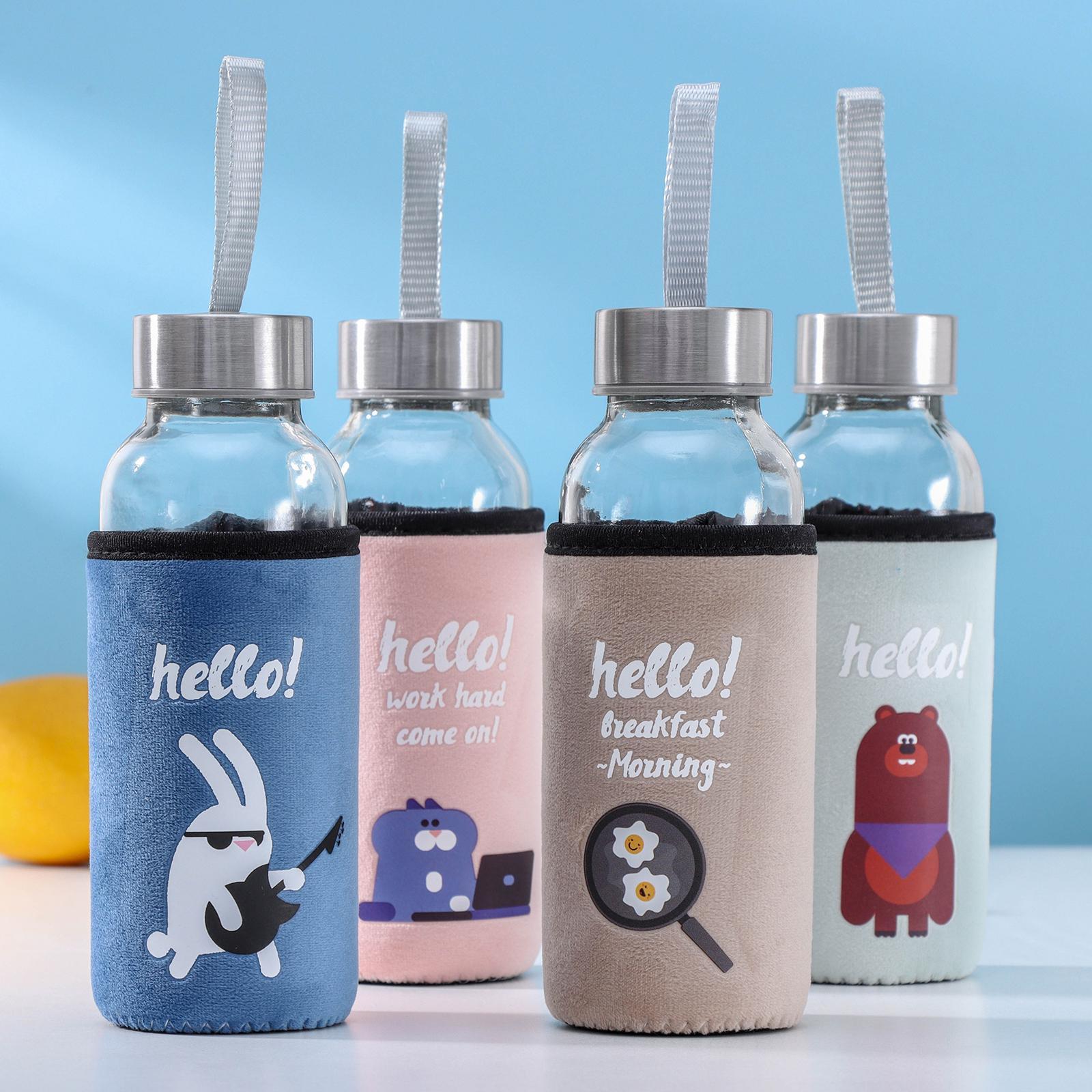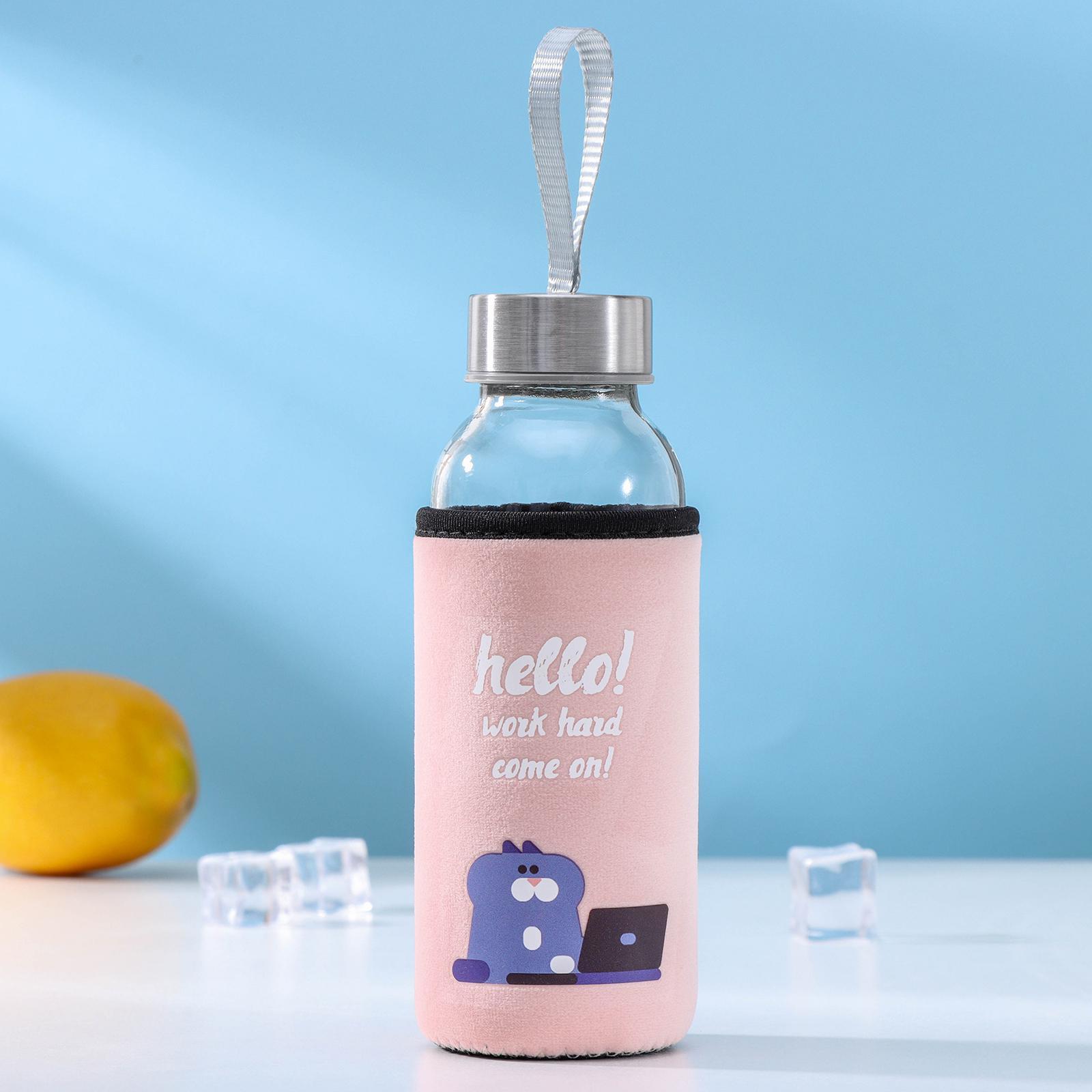 Бутылка для воды стеклянная в чехле Hello, 300 мл, H=17 см, рисунок микс