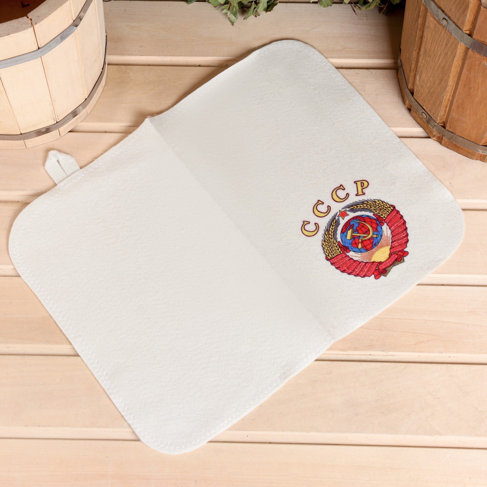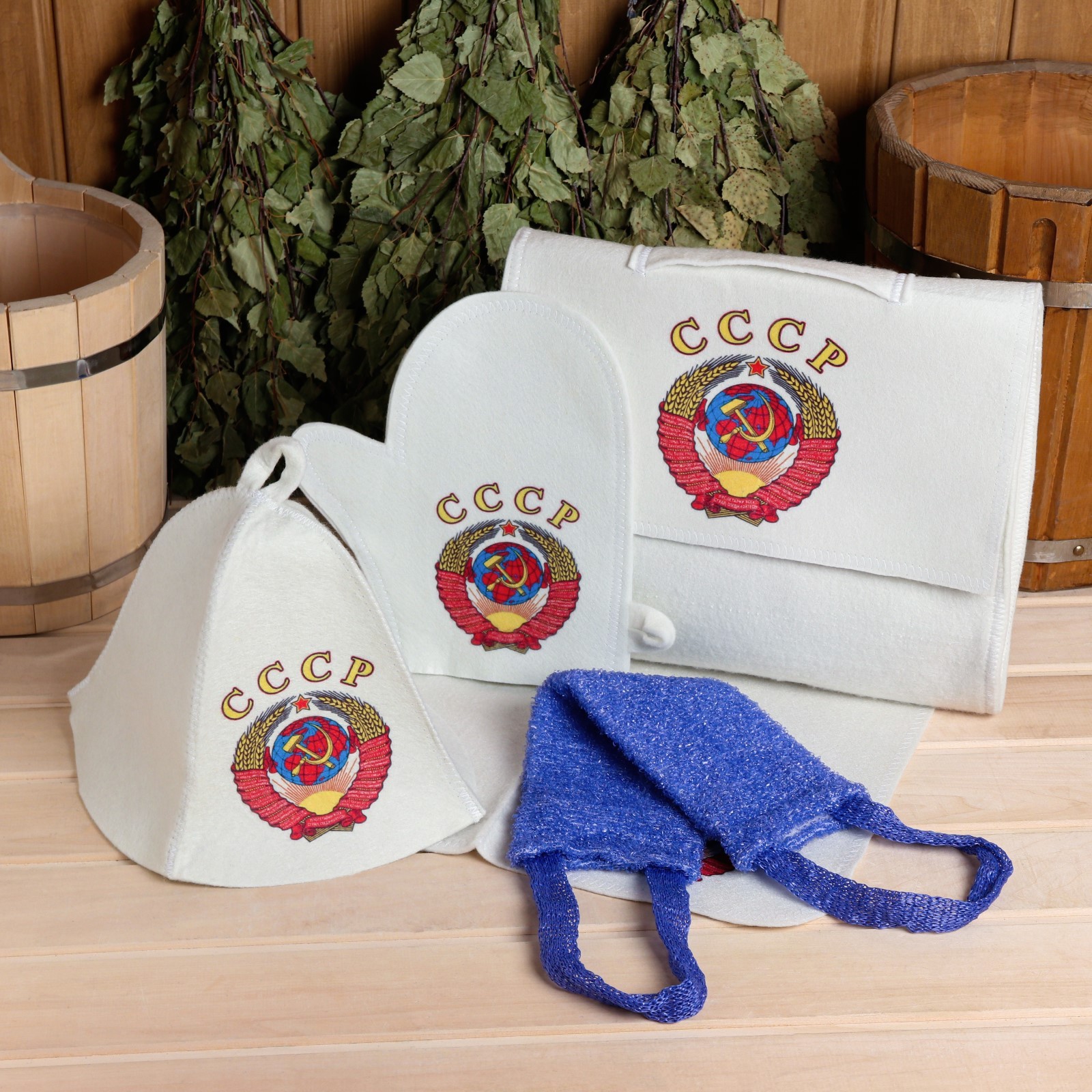 Набор для бани с принтом «ссср», 5 предметов: шапка, рукавица, коврик, портфель, мочалка, «добропаровъ»