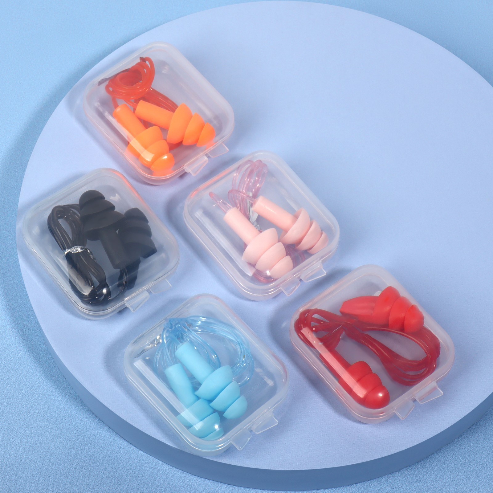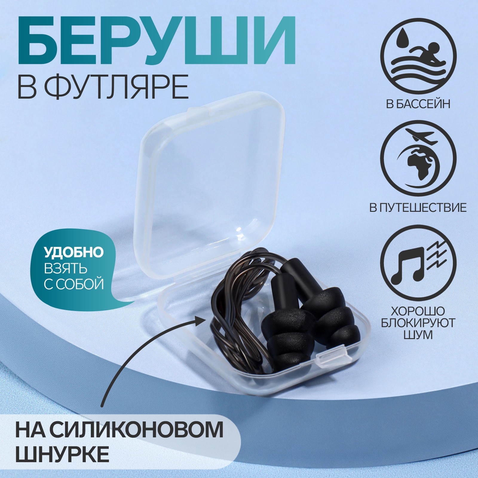 Беруши, фасовка 10 пар, на силиконовом шнурке, в пластиковом футляре, цвет микс