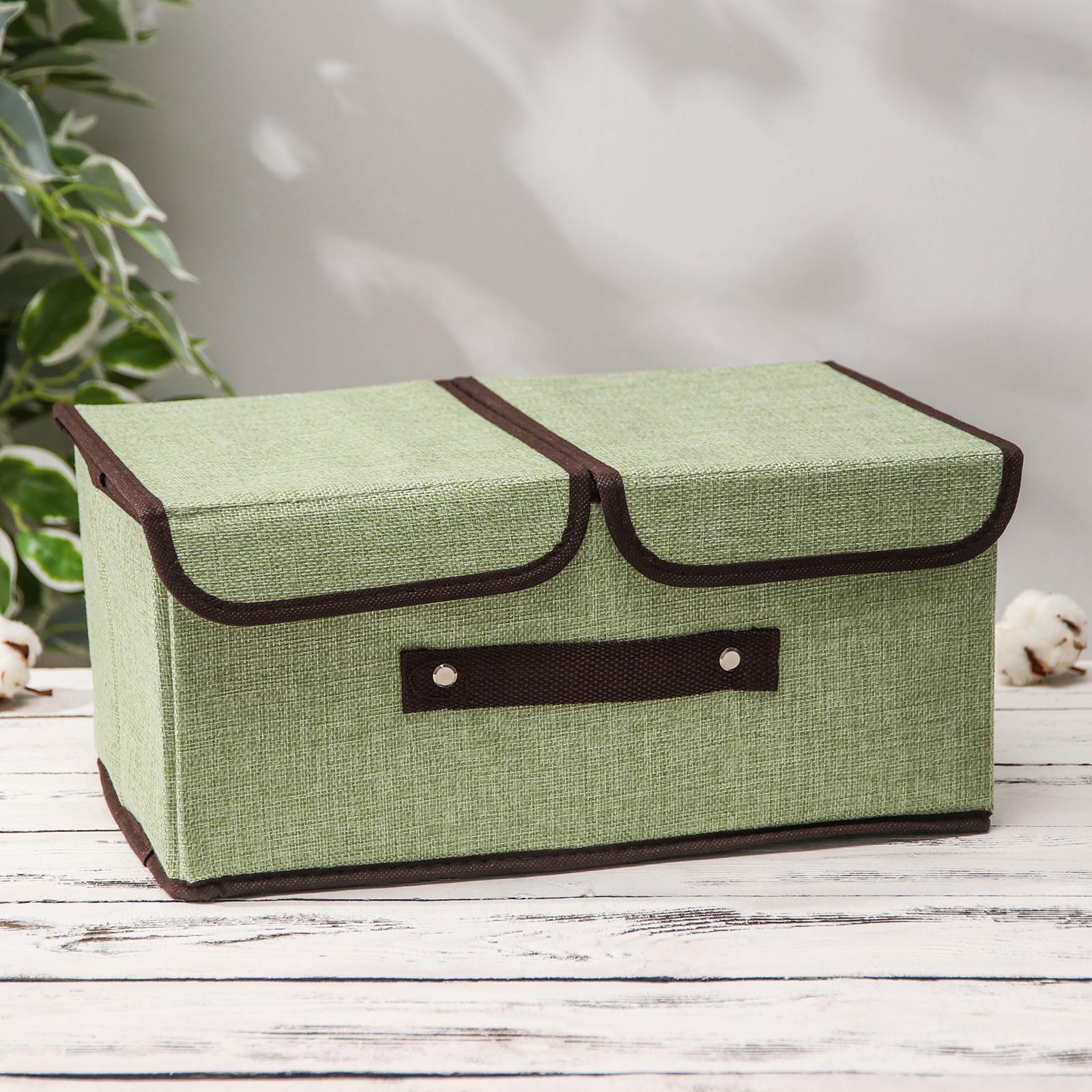 Короб стеллажный для хранения с двойной крышкой «тэри», 36x25x16 см, цвет зелёный