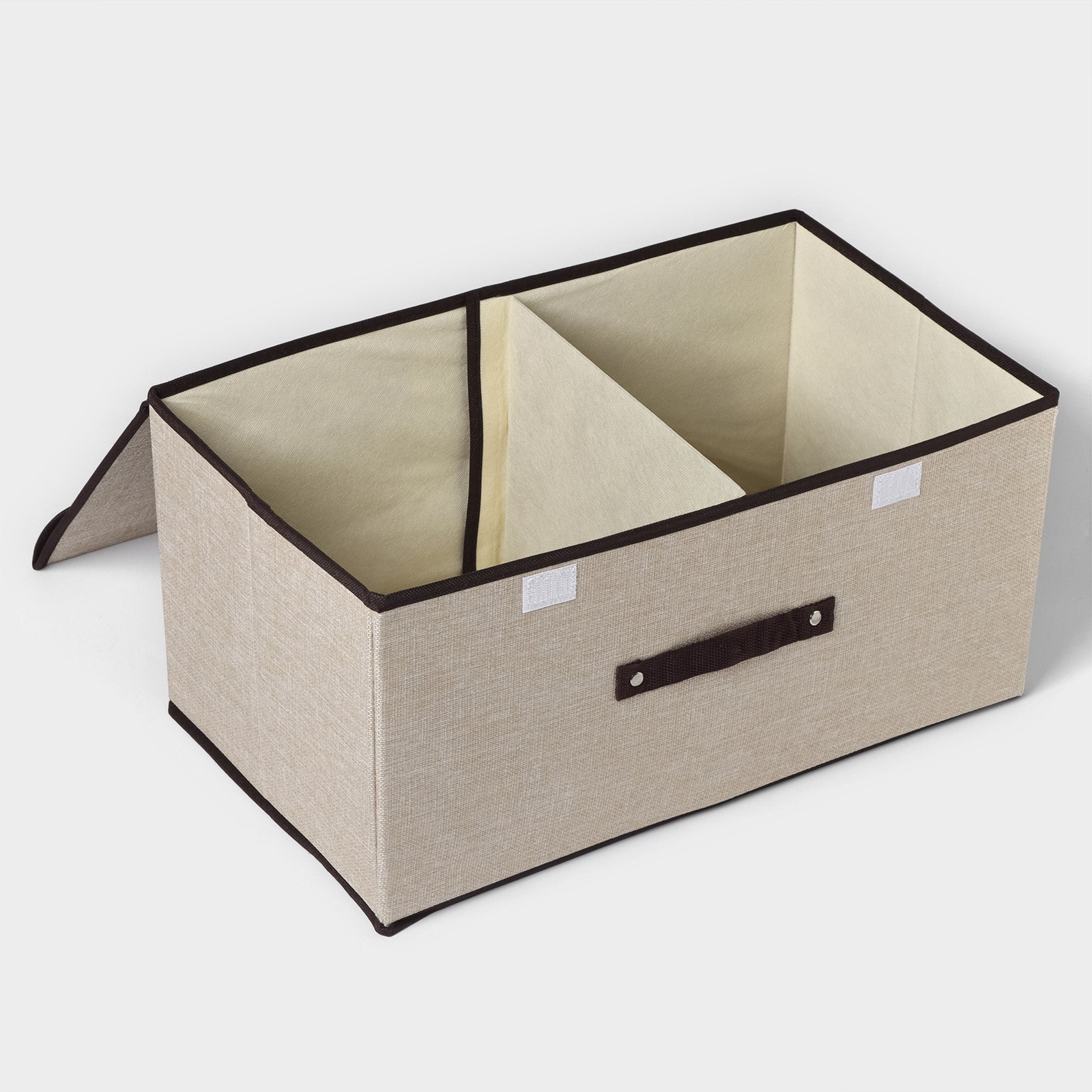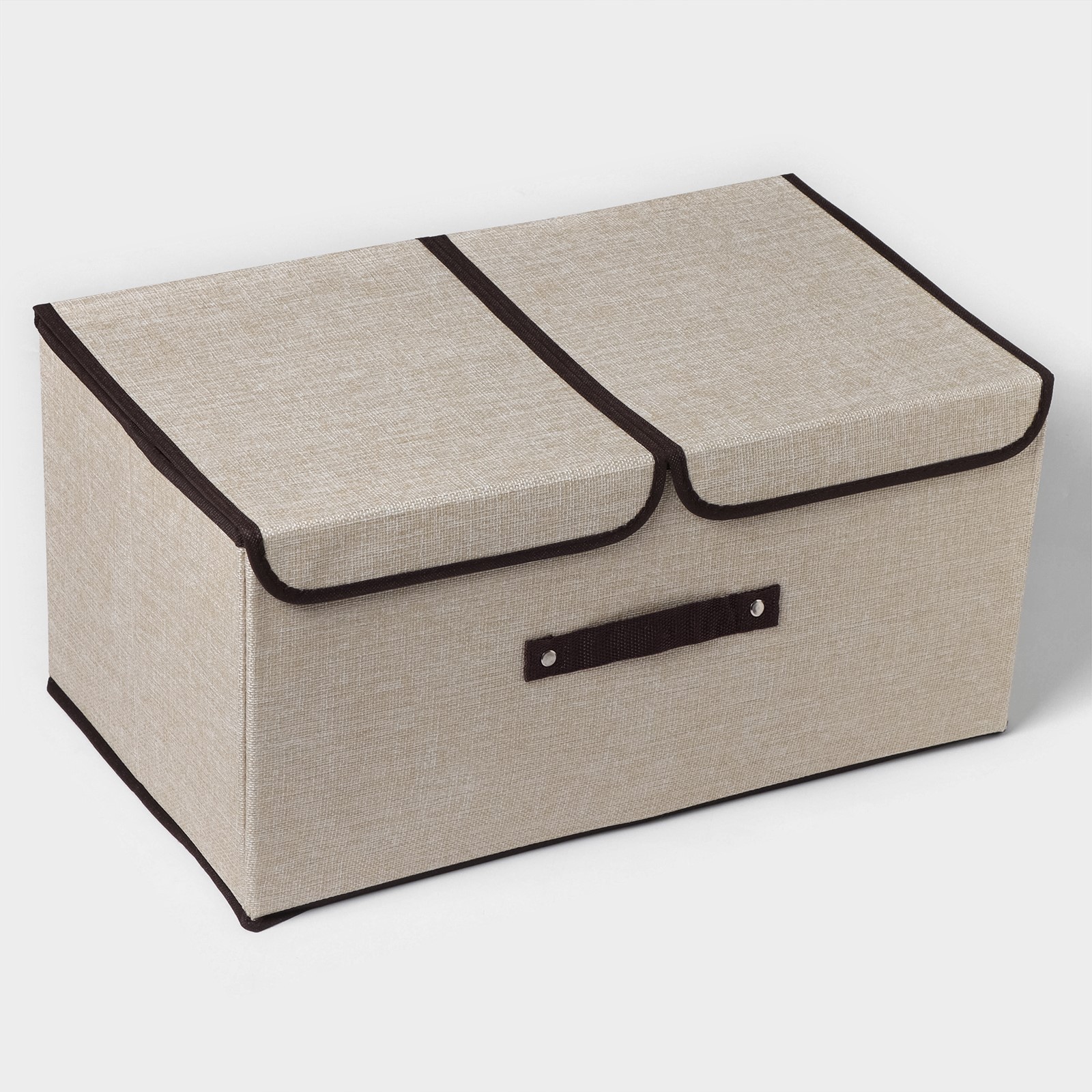 Короб стеллажный для хранения с двойной крышкой доляна «тэри», 50x30x25 см, цвет бежевый. Многие сталкиваются с проблемой размещения небольших вещей. Занимать ими целую полку жалко, а хранить в других местах неэстетично. Решение есть! Кофр поможет разобраться с беспорядком. Поставьте его в гардероб или на пол, и вы всегда будете знать, где и что в нём находится. Благодаря лёгкости убрать изделие на возвышение смогут даже хрупкие девушки. Преимущества: Большой объем. Многофункциональность. Малый вес и отсутствие острых углов. Стильный дизайн. Вместе с этим простым предметом в доме поселятся порядок и уют. Оригинальное изделие дополнит ваш интерьер и станет украшением помещения. Цвет: Бежевый Форма: Прямоугольная Ширина, см: 50 Высота, см: 25 Глубина, см: 30 Количество отделений: 2 Материал: Лён Форма: Прямоугольник  развернуть описание ▼
