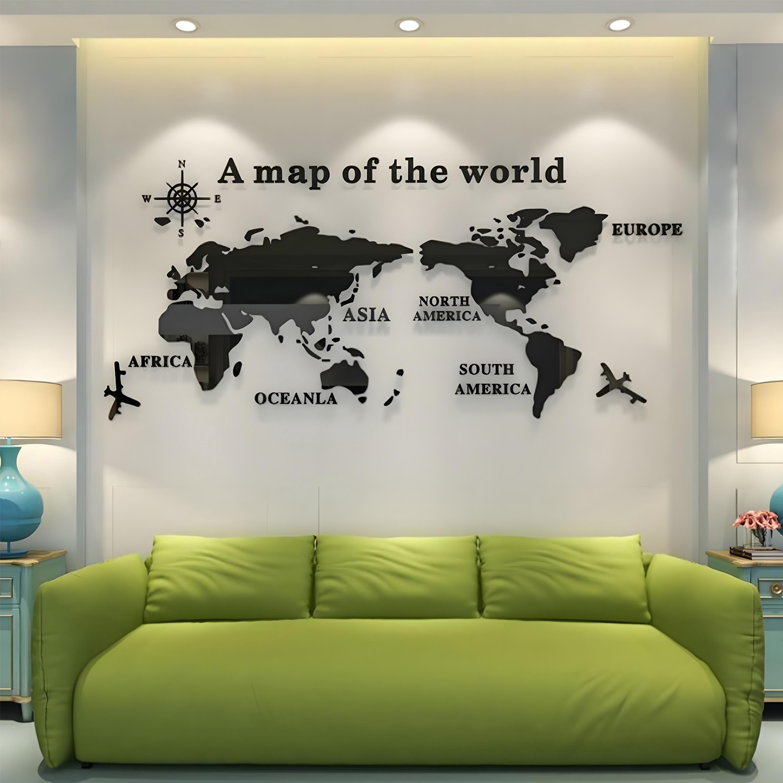 Набор наклеек интерьерных take it easy «карта мира», зеркальные, декор настенный, панно, 105 230 см. Настенные наклейки изготовлены из высококачественного акрила. Это долговечный, безопасный, влагостойкий и неприхотливый в уходе материал. Наклейки подходят для декора интерьера дома, офиса, магазина. Их используют, чтобы освежить или дополнить интерьер, скрыть дефекты на стене, в качестве безопасной и оригинальной альтернативы зеркалу. Изделие легко крепится на любой чистой, сухой, гладкой поверхности. Например, на окрашенной или оклеенной обоями стене, стекле, керамической плитке, металле, пластике. Наклейки легко снимаются и не оставляют следов, поэтому их удобно часто менять или использовать в съёмной квартире. Нанесение на поверхность Наклейка состоит их трёх слоев — виниловой основы с клеевым слоем, защитной подложки снизу и прозрачной плёнки сверху. Не снимайте защитную плёнку с глянцевой части изделия, пока не закончите работы. Подготовьте поверхность, на которую будете крепить наклейку. Выровняйте, очистите от пыли, при необходимости обезжирьте спиртовым раствором или специальной жидкостью. Приложите наклейку к стене, наметьте место, куда вы хотите её приклеить. При необходимости закрепите её малярным скотчем, чтобы посмотреть издалека, как она будет выглядеть. Если устраивает — начинайте клеить. Маленькие стикеры клеить просто: полностью отделите нижнюю подложку, аккуратно приложите наклейку к поверхности и прижмите, разглаживая ракелем или мягкой тряпочкой от центра к краям. Большую наклейку приложите подложкой к стене и аккуратно отделите небольшую её часть. Приклейте этот край, прижмите и аккуратно вытягивайте подложку, одновременно прижимая освободившиеся части наклейки. Разглаживайте изделие от центра к краям. Если нужно состыковать элементы наклейки, начинайте с самого крупного. Например, если наклейка в виде дерева — приклейте сначала ствол, а потом ветви. Когда работы с наклейкой закончены, аккуратно удалите защитную плёнку. Стягивайте её так же, как удаляли подложку, оттягивая вниз или в сторону. Цвет:Чёрный|Ширина, см:230|Высота, см:105|Тематика:Карта мира|Материал:Акрил|Материал:EVA|Вид наклейки:Интерьерная|Вид наклейки:Зеркальная|Страна:Китай  развернуть описание ▼