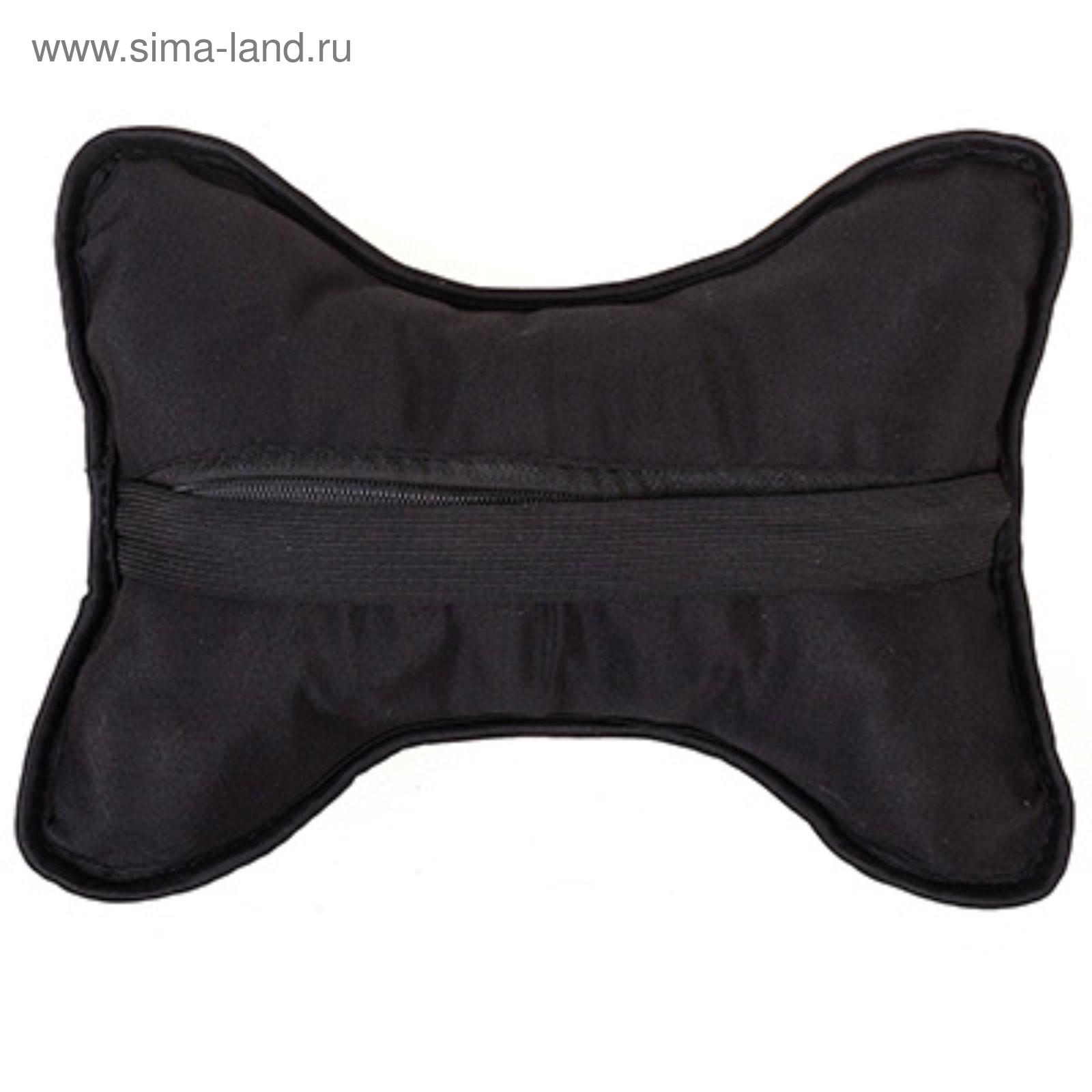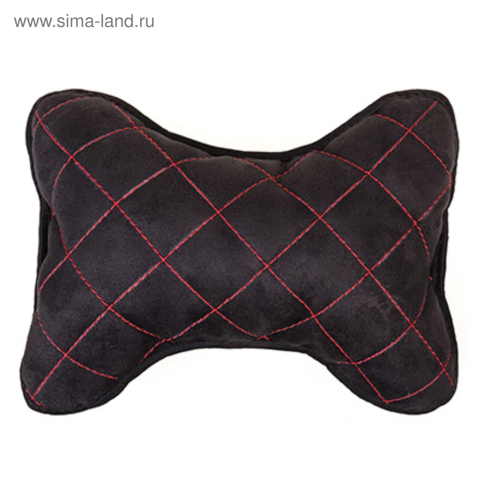 Подушка автомобильная косточка, на подголовник, Skyway Expensiv алькантара чёрный, строчка красный, S08003002