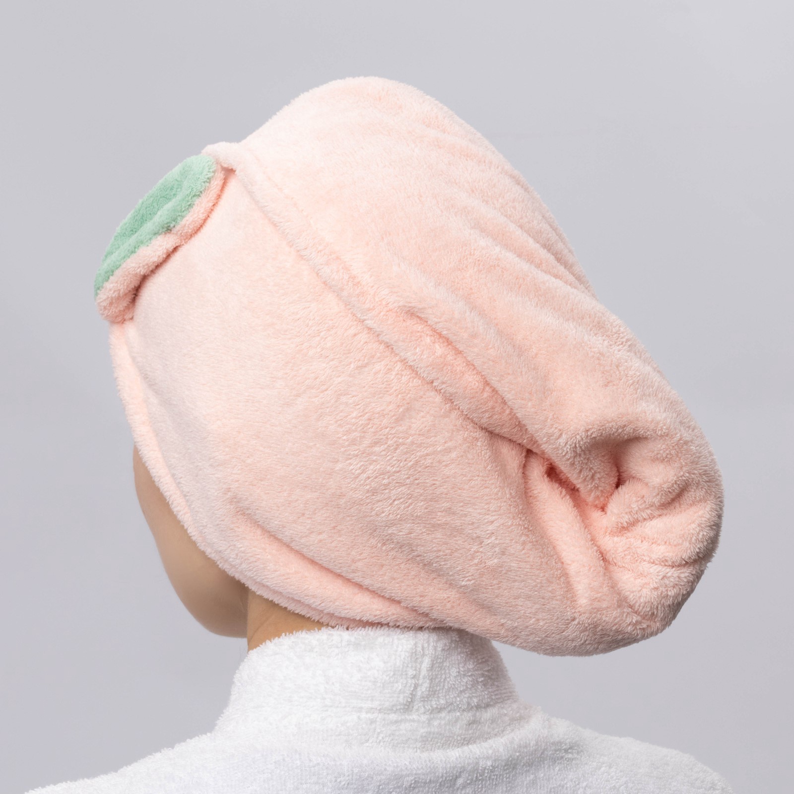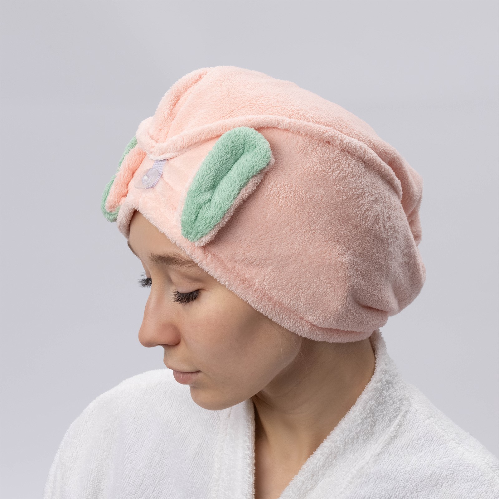 Чалма для сушки волос доляна «ушки», микрофибра, с пуговкой, розовая