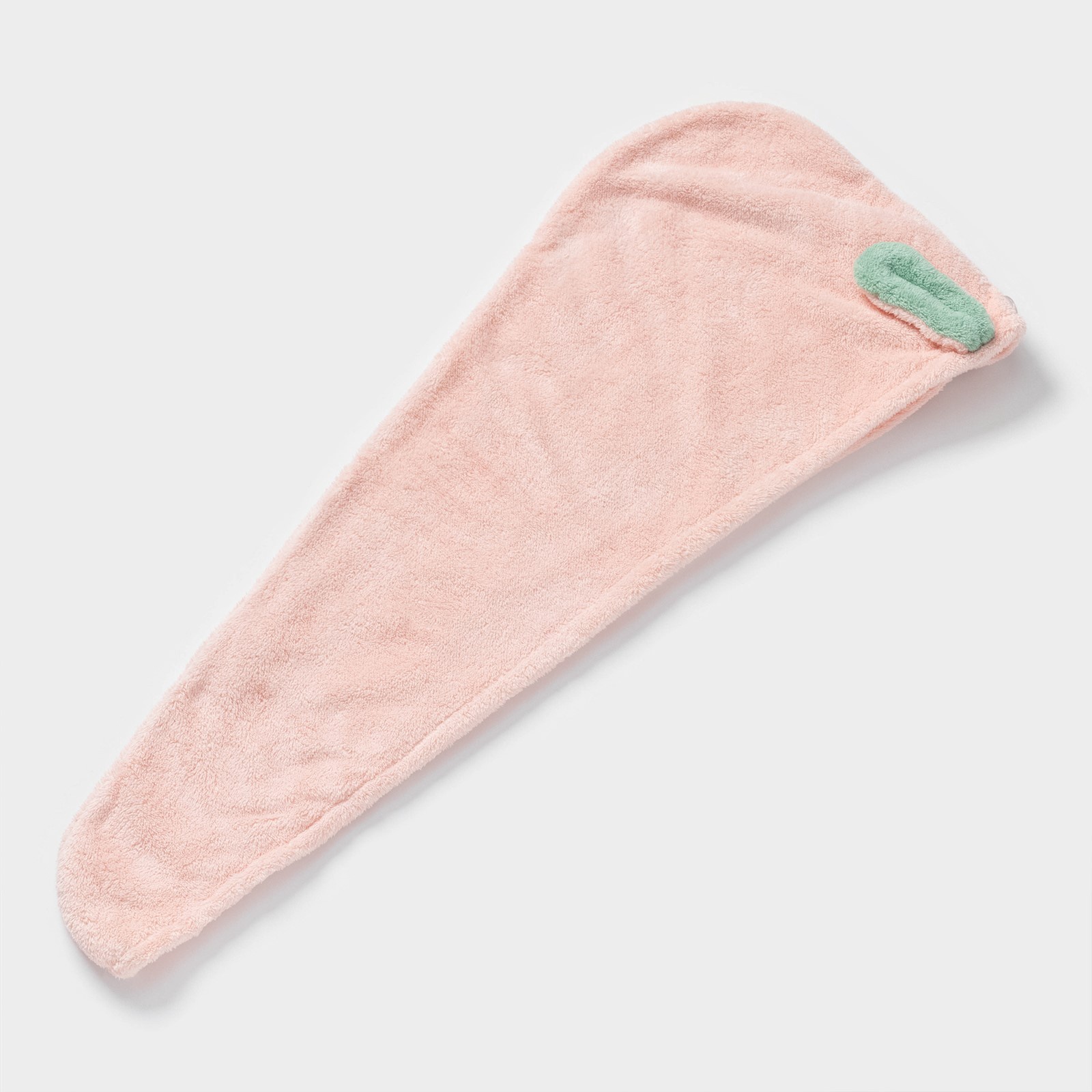 Чалма для сушки волос доляна «ушки», микрофибра, с пуговкой, розовая.
