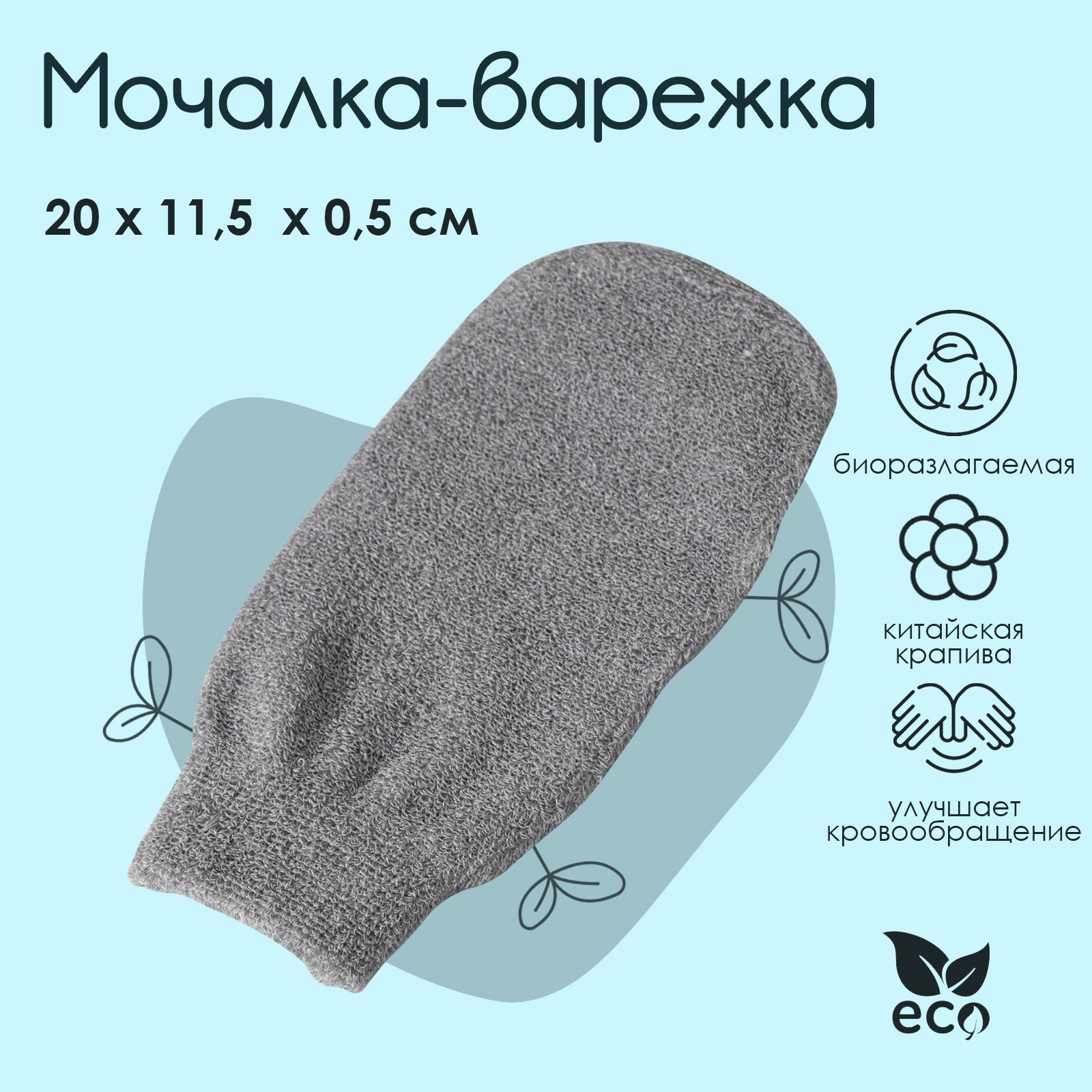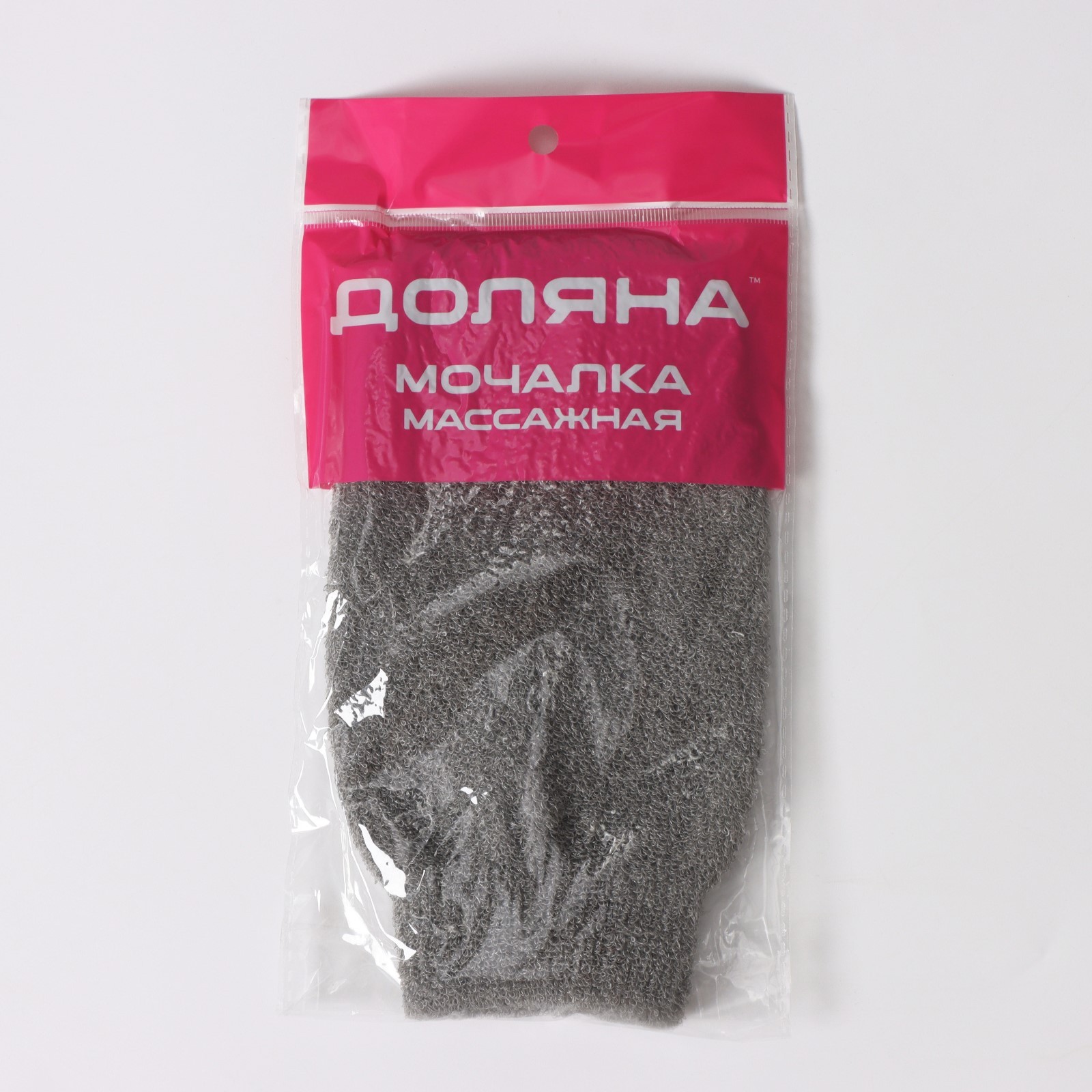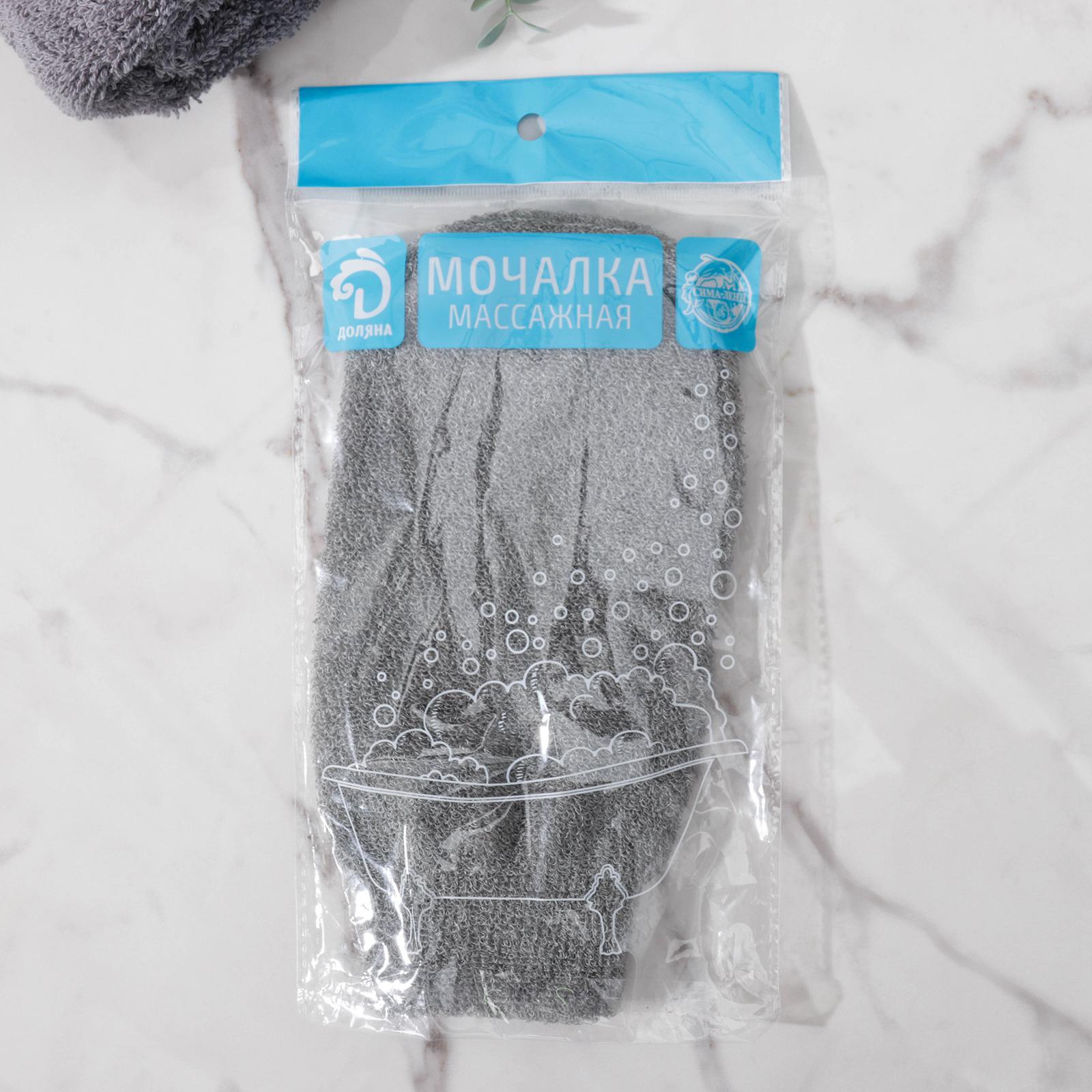 Мочалка-варежка для тела массажная доляна, 21x11,5 см, бамбуковый уголь, китайская крапива, цвет серый
