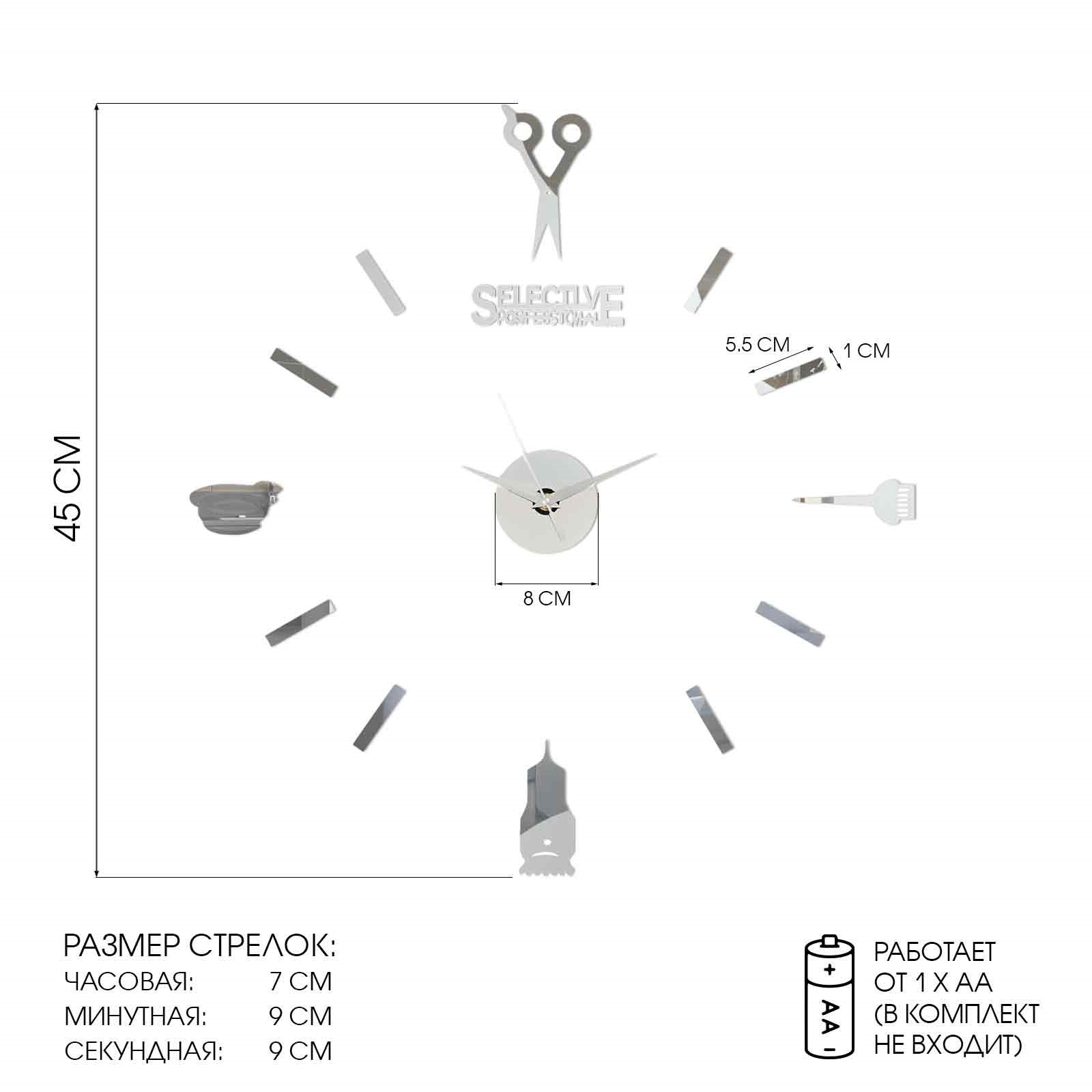 Часы настенные интерьерные большие, 3d парикмахер, наклейка, D-45 см