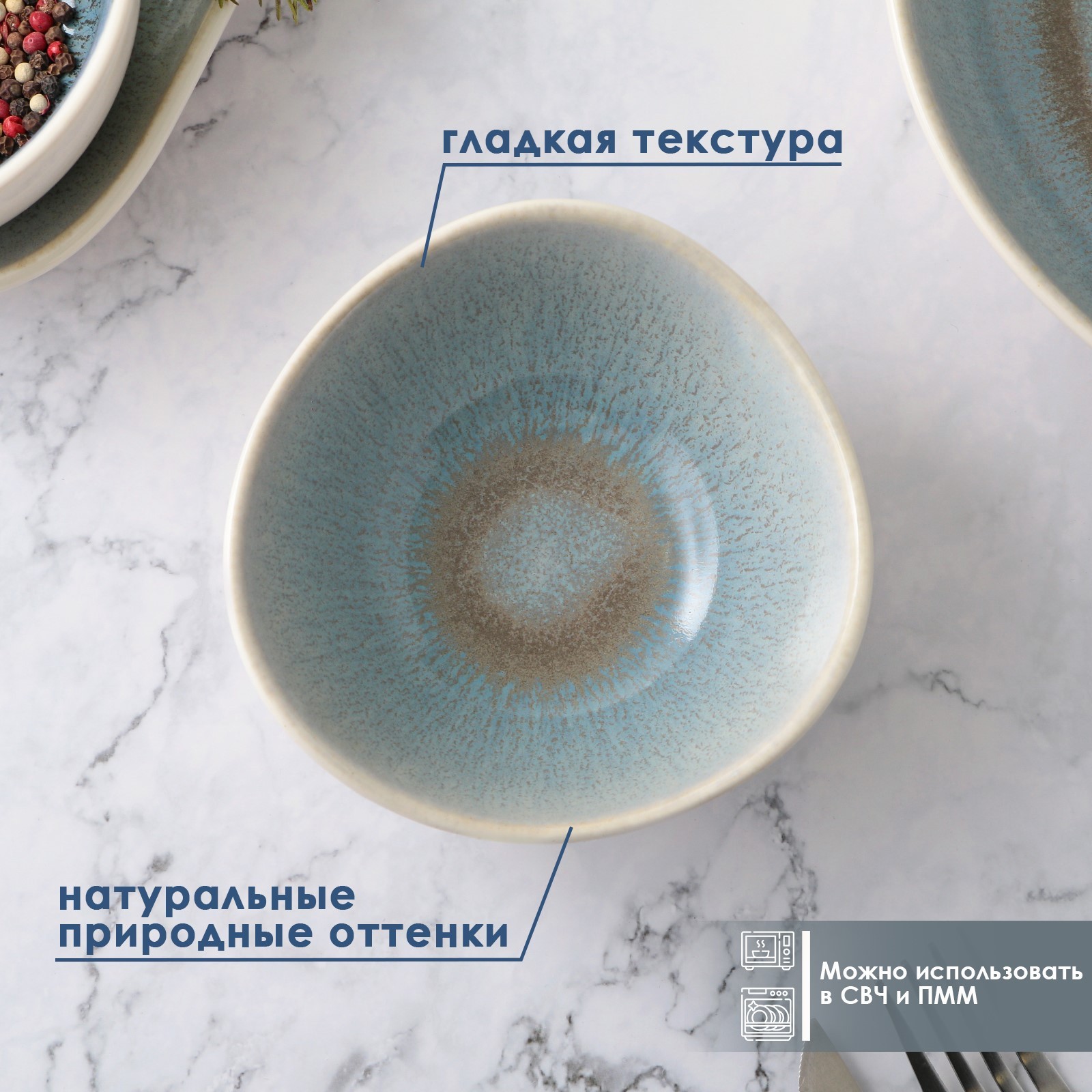 Салатник фарфоровый Magistro Ocean, 300 мл, цвет голубой