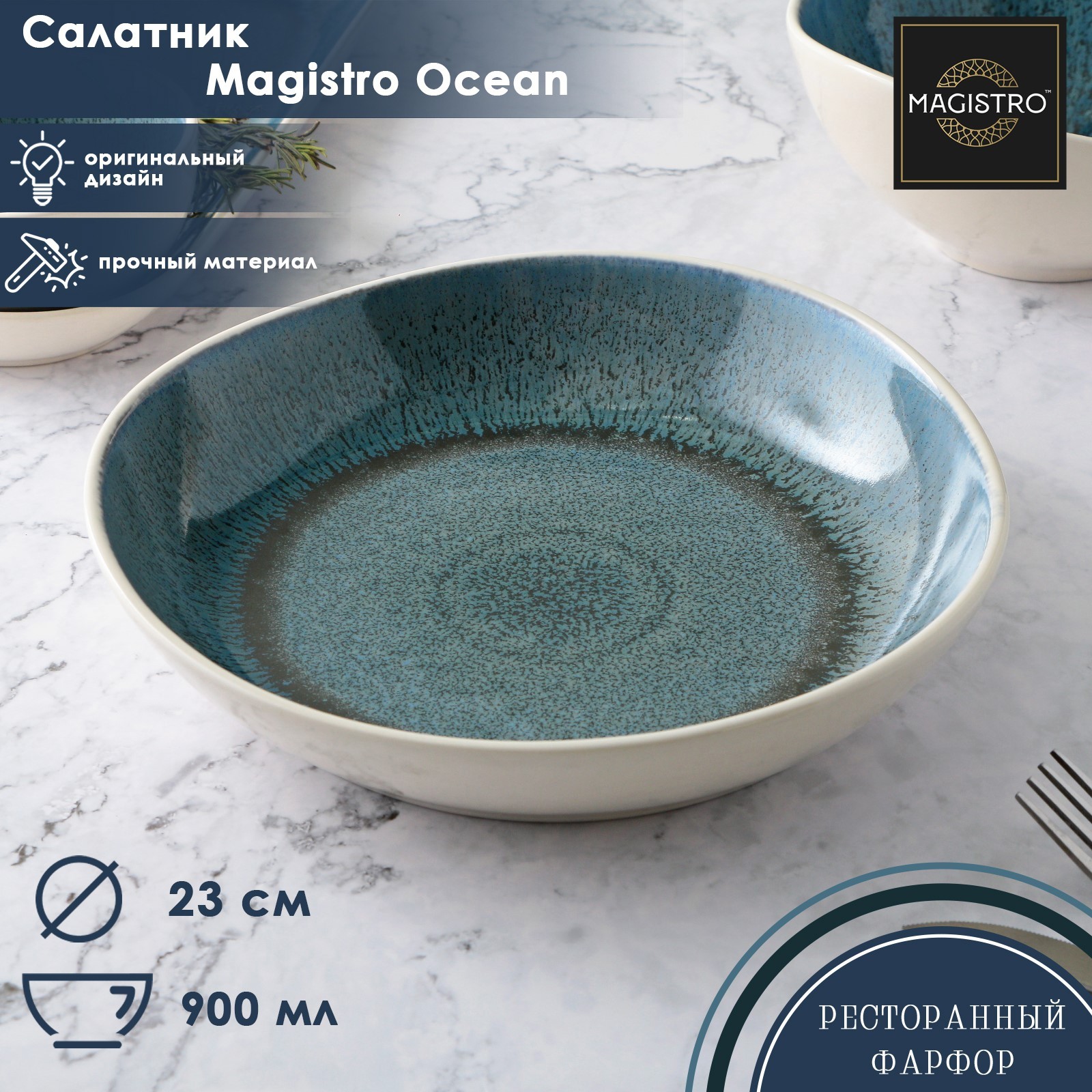 Салатник фарфоровый Magistro Ocean, 900 мл, цвет синий