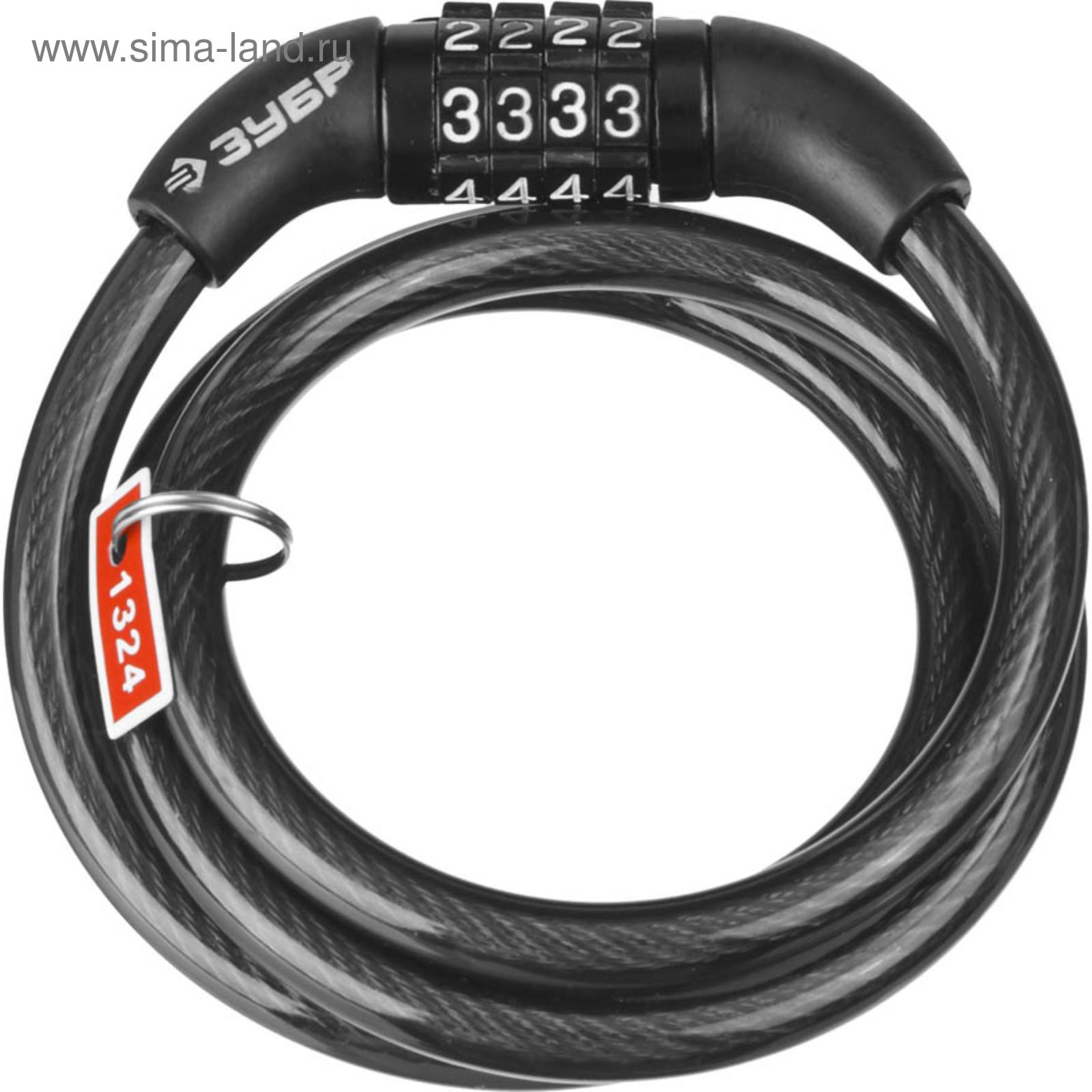 Замок "зубр стандарт", тросовый, кодовый, с неизменяемым кодом, длина троса - 1200 мм, D=8 мм. 545